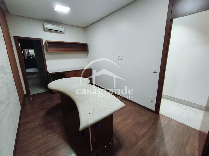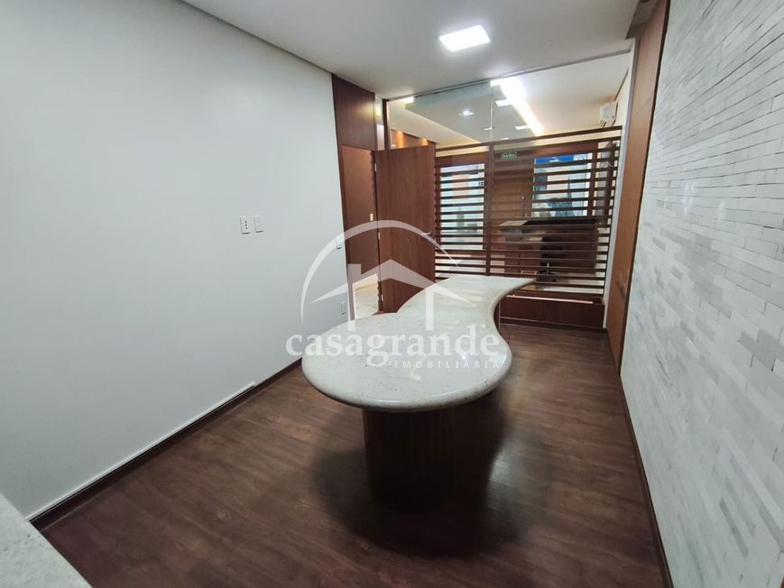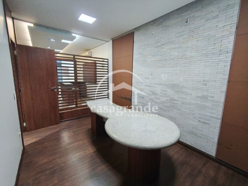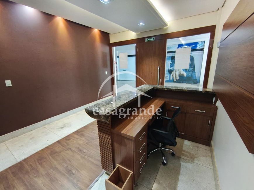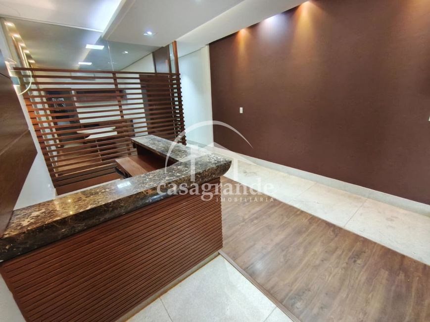 Sala comercial em localização privilegiada no bairro Santa Mônica, próximo a hospital, dispõe de recepção ampla, sala de reunião com banheiro privativo, banheiro de serviço, copa com cozinha e armários embutidos. O imóvel possui acabamento em madeira e uma vaga de estacionamento.