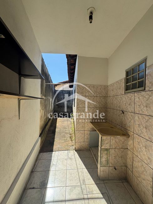 Casa contém sala, 2 quartos, banheiro social, cozinha estilo americana, área de serviço separada e coberta, corredor externo, piso em cerâmica, teto de laje, 1 vaga p/ veículo, com aproximadamente 60m².