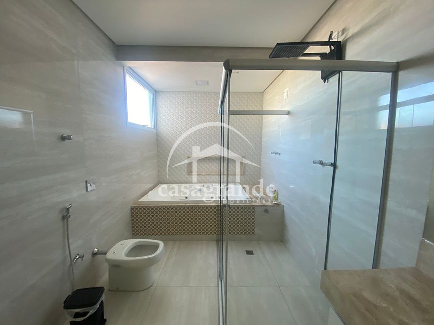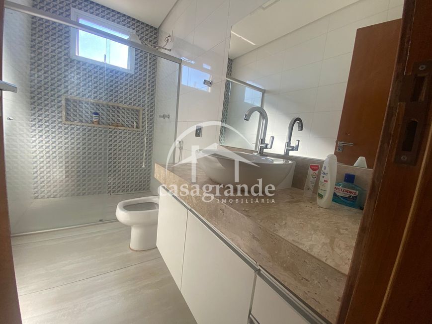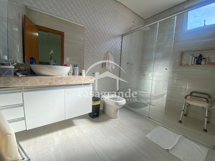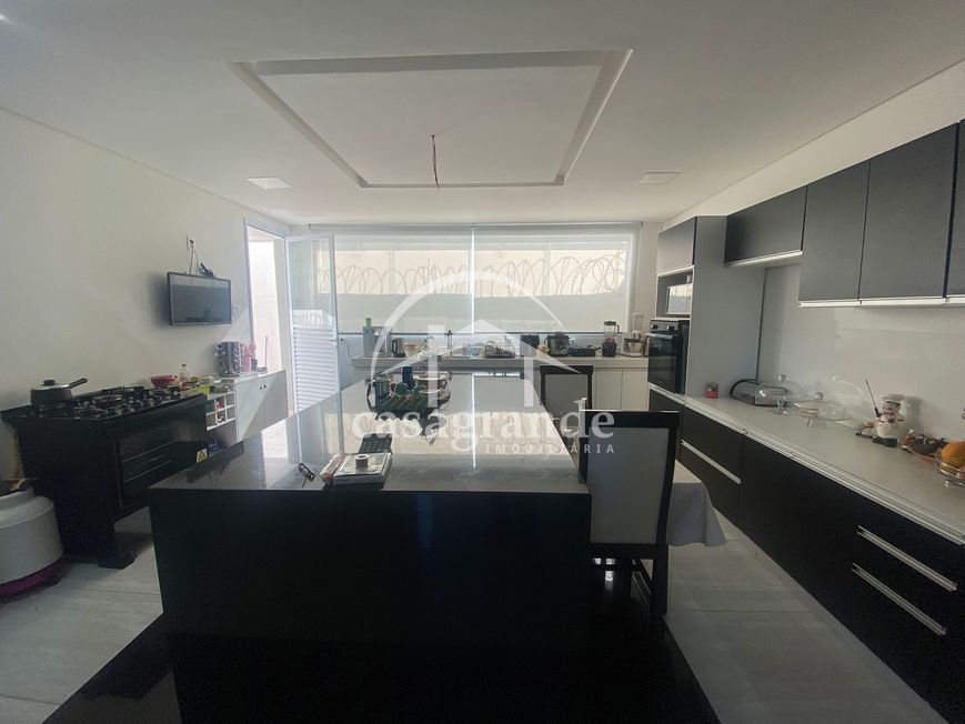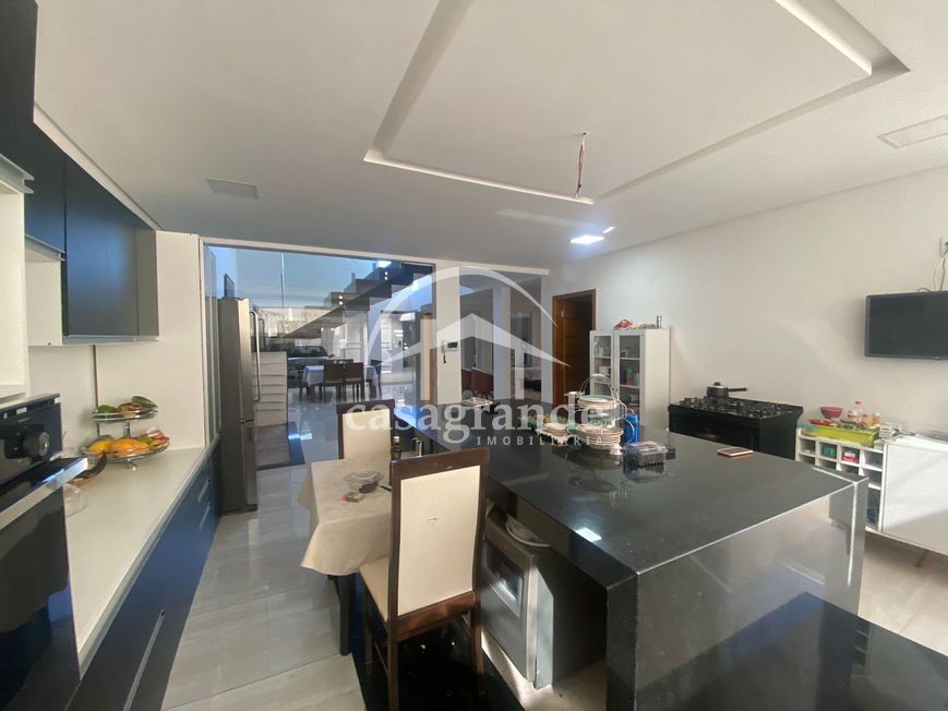 Excelente casa estilo sobrado com aproximadamente 380 m² de área construída e 250 m² de terreno sendo primeiro piso com hall de entrada, sala ampla em 2 ambientes, 01 banheiro social, 01 suíte com armários, cozinha ampla com bancada em granito com formato em ilha e armários planejados. Segundo piso dispões de 03 quartos sendo todos suítes com armários e uma suíte máster com banheira closet e sacada ampla. Todos os banheiros com box em blindex, armários sob a pia e espelho. Imóvel com uma excelente varanda gourmet com churrasqueira e bancada com pia e garagem para 03 carros.