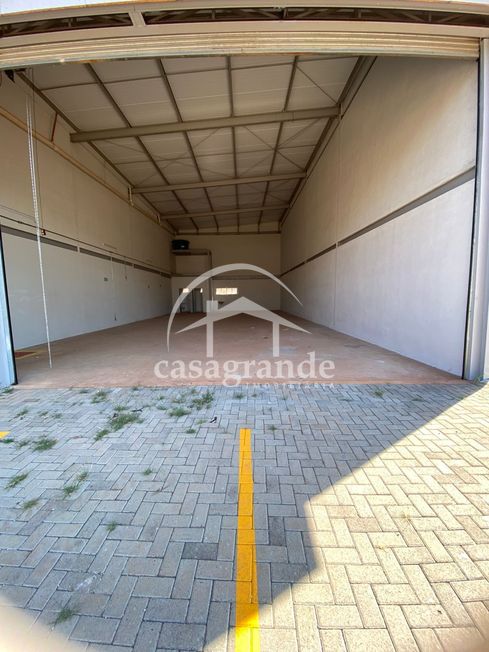Excelente galpão para aluguel no bairro Santa Mônica, de aprox. 200 m² de área construída, com frente recuada e estacionamento frontal, porta de entrada de enrolar com 4,5 metros, pé direito com 7,5 metros, 2 banheiros, piso concreto usinado.