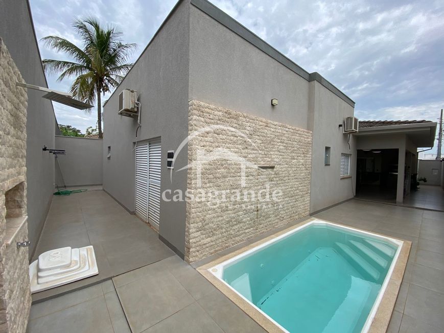 Belíssima casa para locação em condomínio nobre de Uberlândia! Em fino acabamento, este imóvel oferece sala ampla em dois ambientes com painel, ar condicionado e porta de correr em 03 tempos que separa ou conjuga com a varanda gourmet que possui churrasqueira, geladeira, ventilação, televisão, piscina aquecida, ducha e lavabo. Escritório com ar condicionado e armários, cozinha planejada com coifa e filtro de água, lavanderia e despensa. Área íntima composta por 04 quartos com armários e ar condicionados, sendo 02 semi-suíte, 01 suíte e 01 suíte master com banheira de hidromassagem. Casa equipada com boiler e placas fotovoltaicas, garantindo água aquecida em todos os chuveiros e torneiras. Garagem com espaço para 04 veículos sendo 02 cobertos. Entre em contato conosco para mais informações!