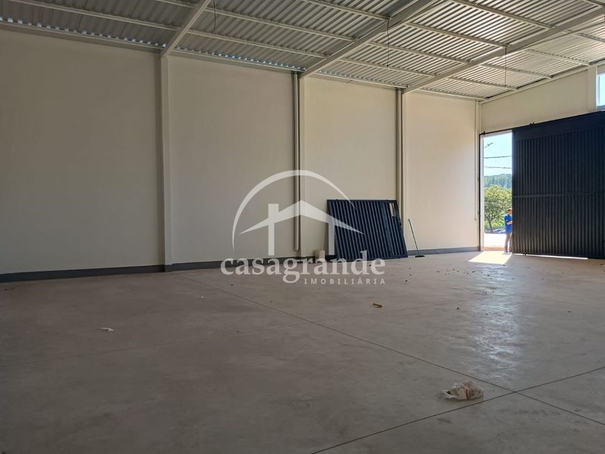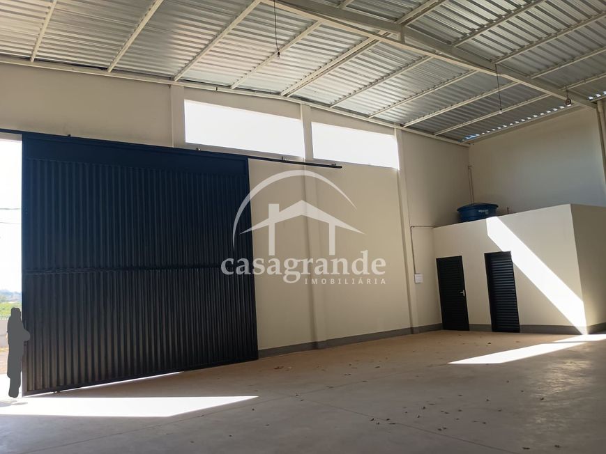 Excelente Galpão próximo a Br 365 contém frente recuada para 3 veículos, pé direito de 6m, área aproximada de 225m² construída e 2 banheiros.