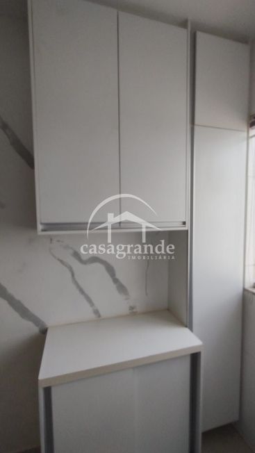 Conta com elevador e cozinha espaçosa, totalmente planejada, com mesa retrátil.