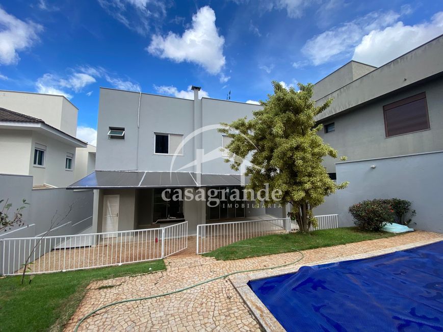 Excelente oportunidade residencial em condomínio Alto Padrão! Casa estilo sobrado, oferece no primeiro piso: sala ampla com pé direito duplo e bem arejada, escritório/quarto, sala de TV com ar condicionado, lavabo, cozinha completa em armários, lavanderia separada e espaçosa, varanda GOURMET com churrasqueira, quintal, piscina, ducha e banheiro. Já no segundo piso há 04 suítes com armários sendo uma MASTER com amplo closet e banheira de hidromassagem. Duas vagas para veículos cobertas e duas descobertas. Condomínio com portaria 24h, academia, quadra poliesportiva, quadra de beach tennis. Entre em contato conosco para mais informações!