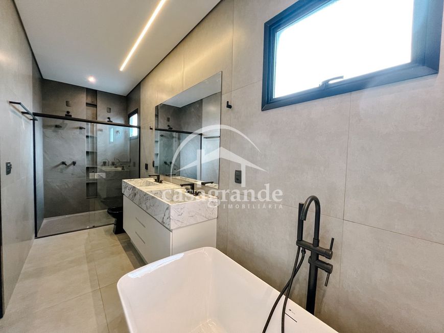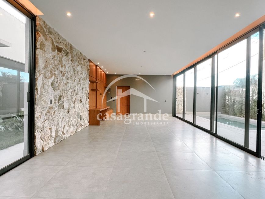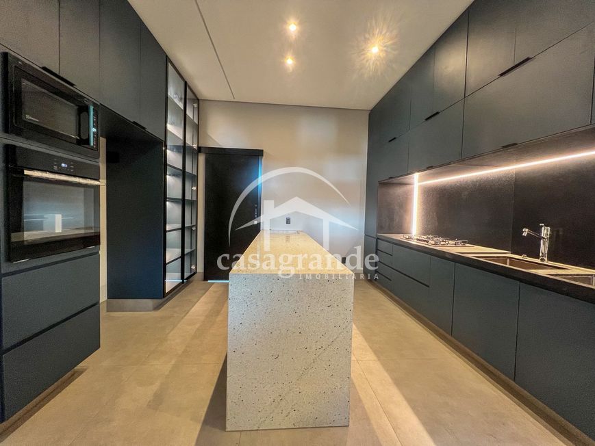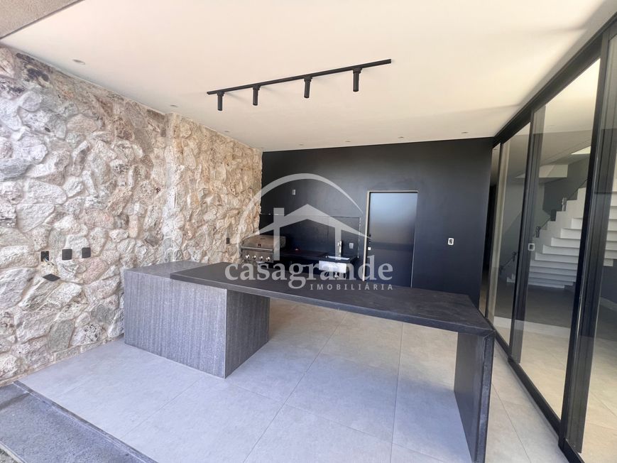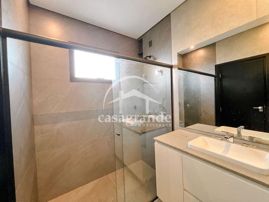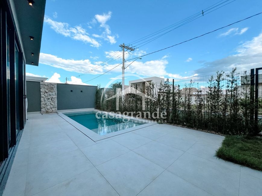 Excelente oportunidade de locação em condomínio fechado. Sobrado de esquina com posição na avenida principal do condomínio com aproximadamente 405 metros de área construída, 04 suítes, sendo 03 com enormes closets cada e uma no andar térreo. Imóvel com toda parte de marcenaria pronta, revestimento em pedras naturais na fachada, sala e outros. Aquecimento solar completo para casa e piscina. Cozinha toda planejada com armários e bancadas. Pré instalação de Ar-condicionado prontas nos quartos, salas e escritório. Piscina em pastilhas com hidro e iluminação, churrasqueira americana inox, Lavabo exclusivo para área de lazer, ambiente gourmet integrado, perfeito para receber amigos e família