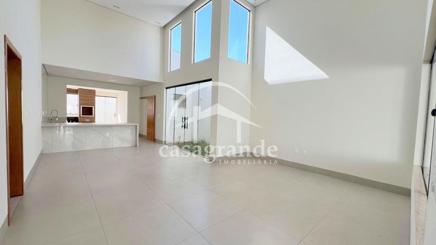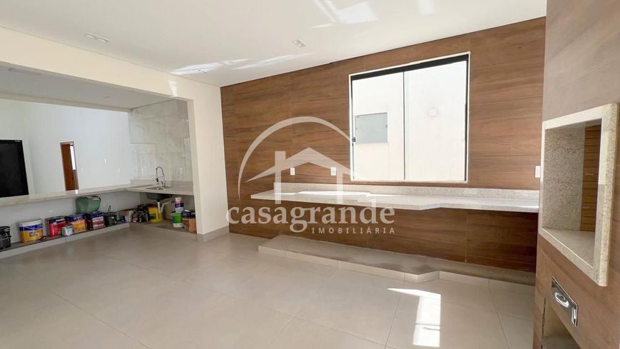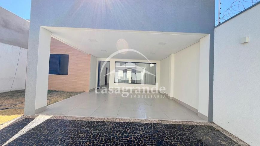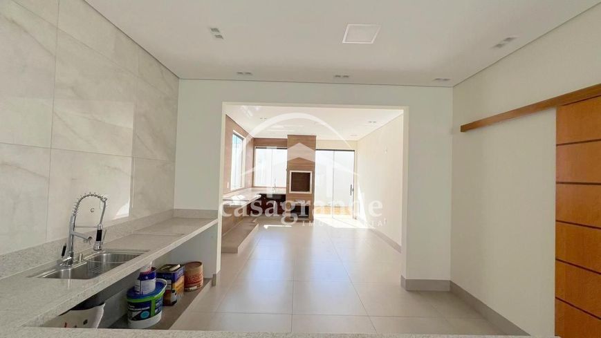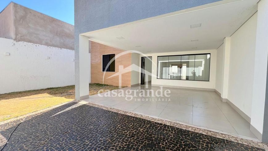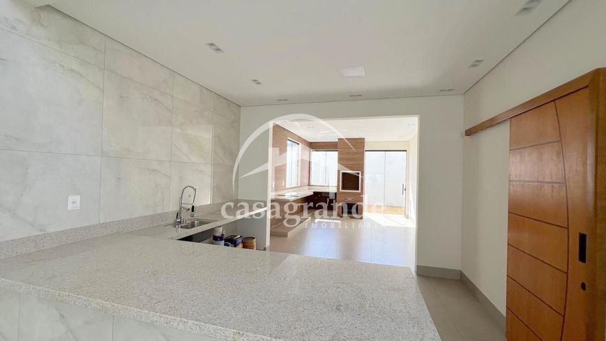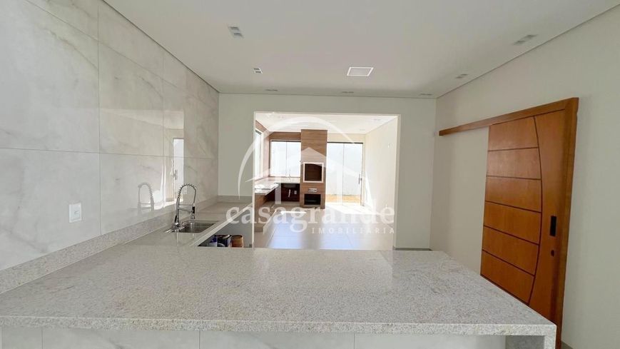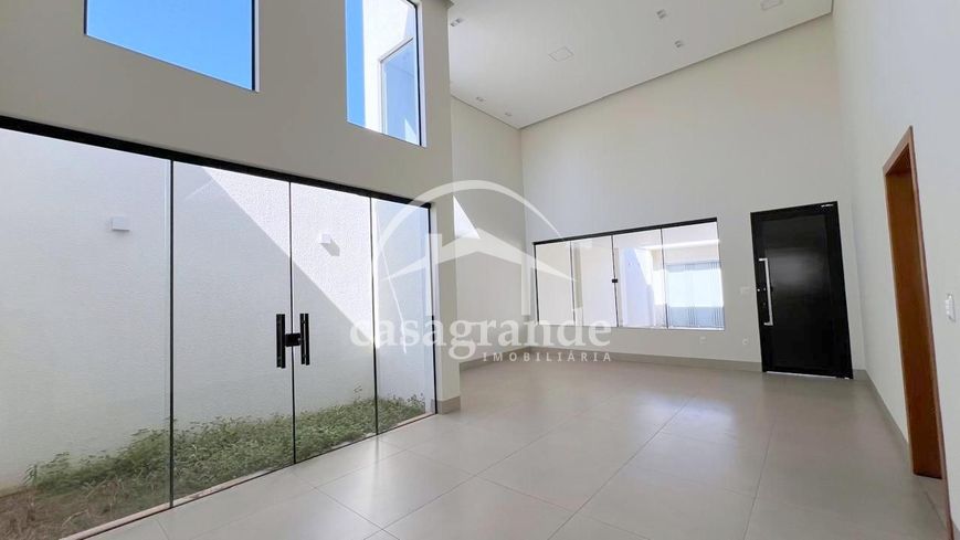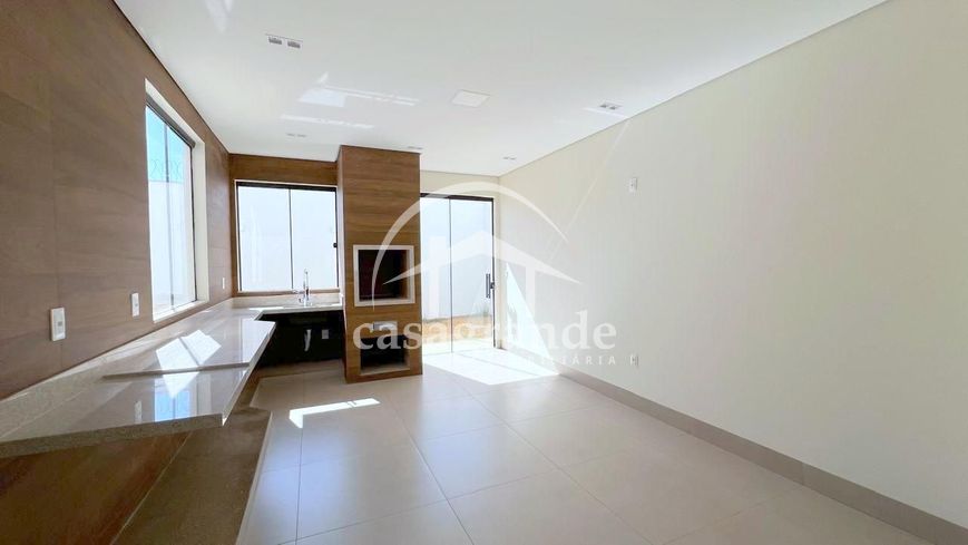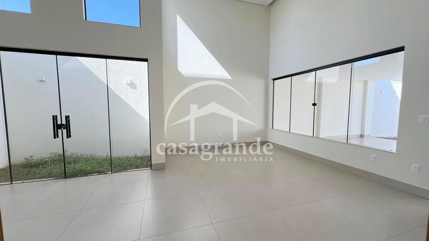 Casa térrea nova, fachada bonita, porta de entrada com fechadura eletrônica, sala em dois ambientes com pé direito alto, jardim de inverno, 3 quartos todos são suítes, sendo a principal com closet e acesso a área externa, uma com jardim de inverno, cozinha com bancada tipo ilha integrada com espaço gourmet, churrasqueira a carvão, banheiro social externo, área de serviço, estendal. 2 vagas de garagens e 1 estacionamento, quintal, gás canalizado.