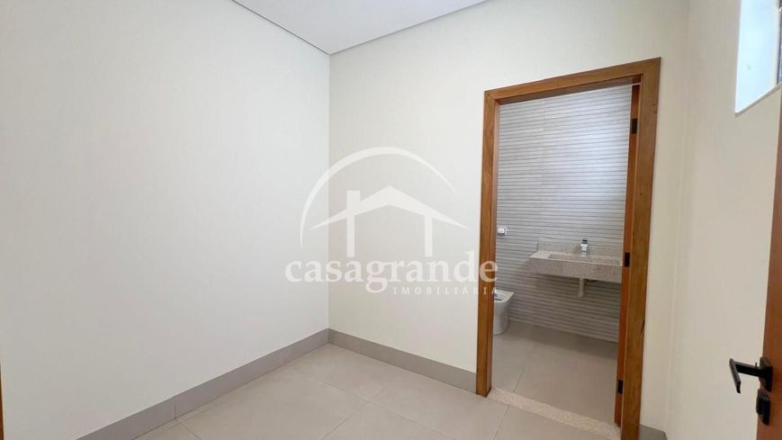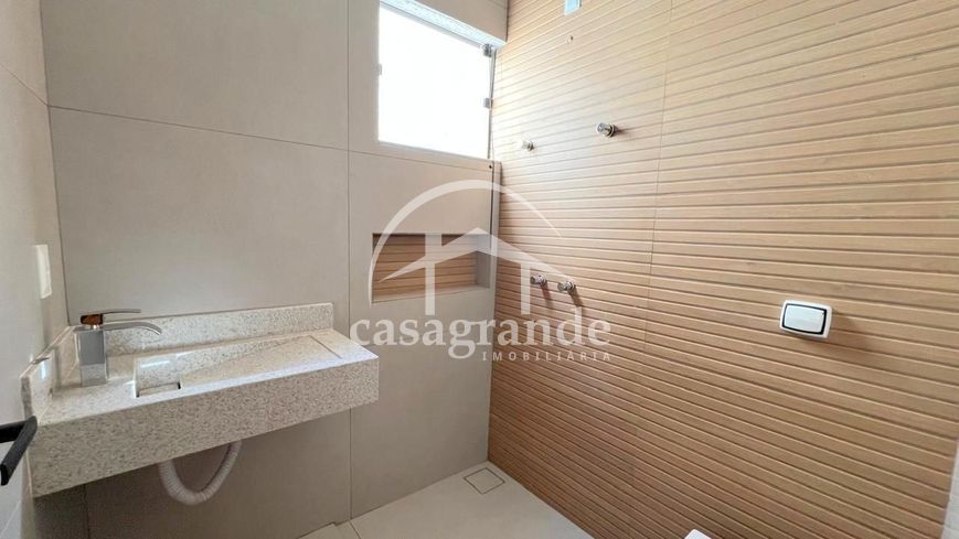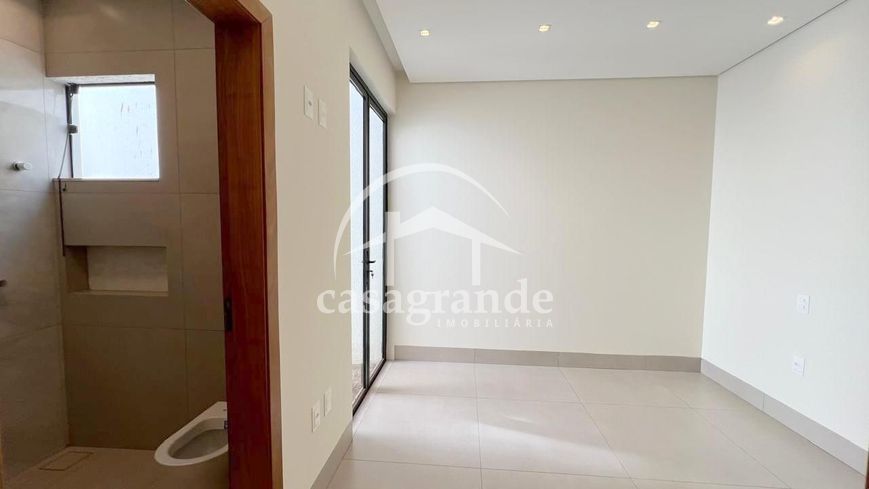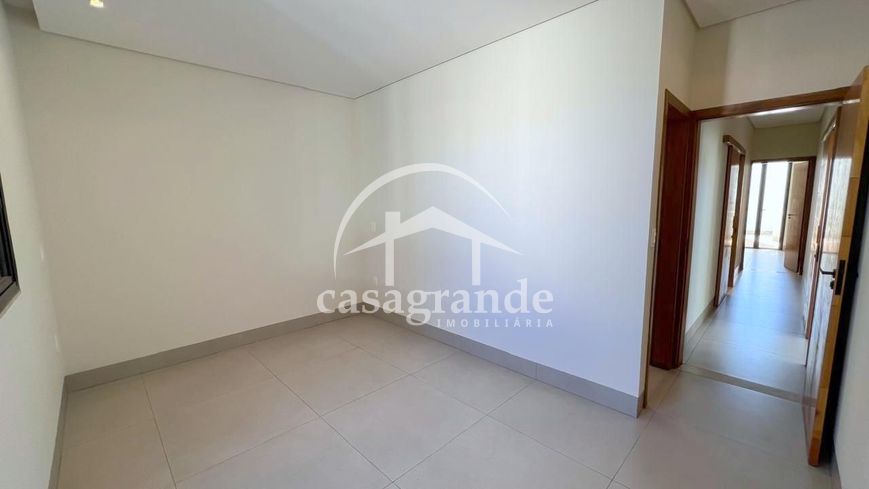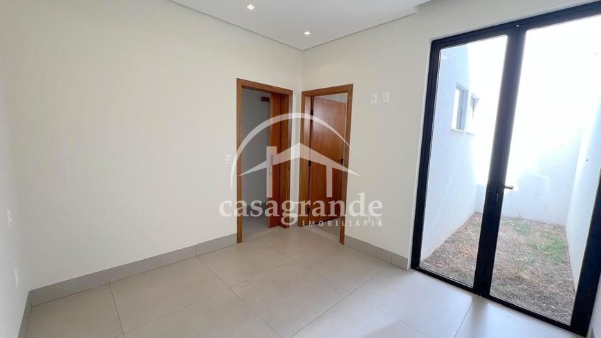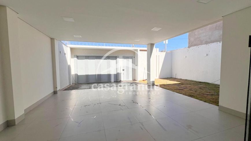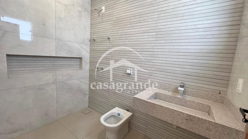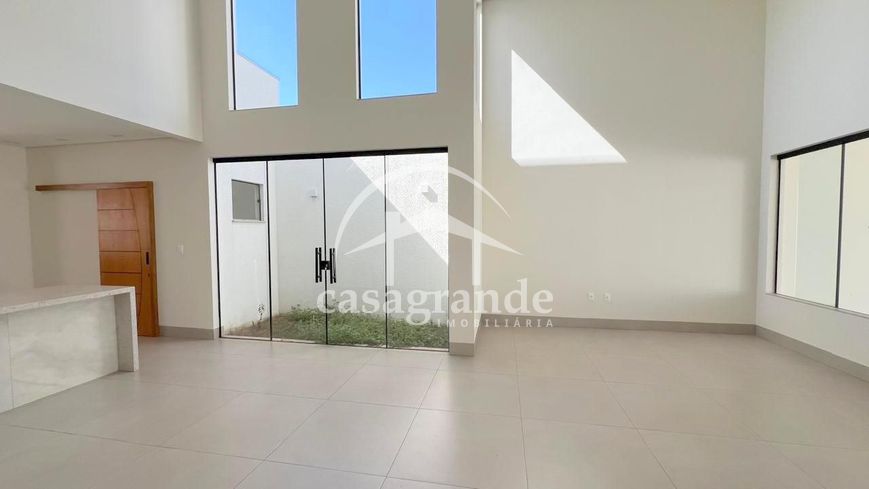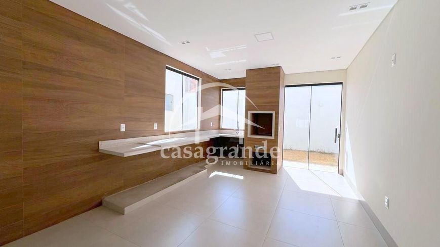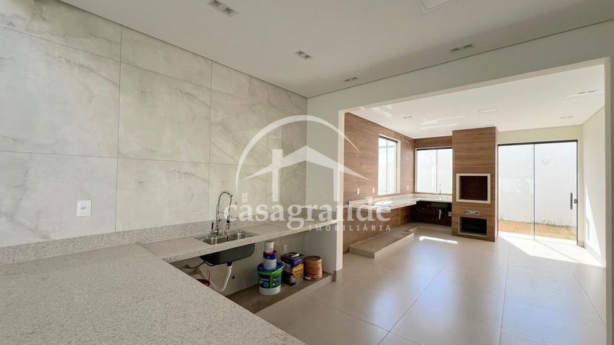 Casa térrea nova, fachada bonita, porta de entrada com fechadura eletrônica, sala em dois ambientes com pé direito alto, jardim de inverno, 3 quartos todos são suítes, sendo a principal com closet e acesso a área externa, uma com jardim de inverno, cozinha com bancada tipo ilha integrada com espaço gourmet, churrasqueira a carvão, banheiro social externo, área de serviço, estendal. 2 vagas de garagens e 1 estacionamento, quintal, gás canalizado.
