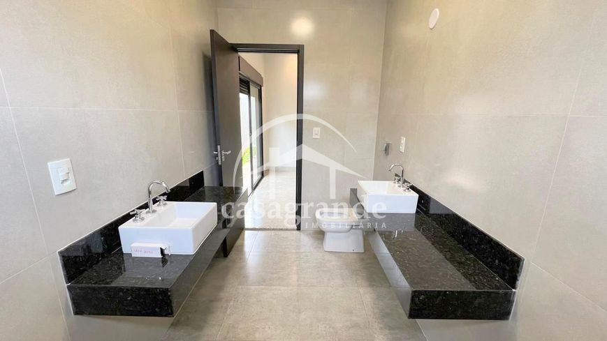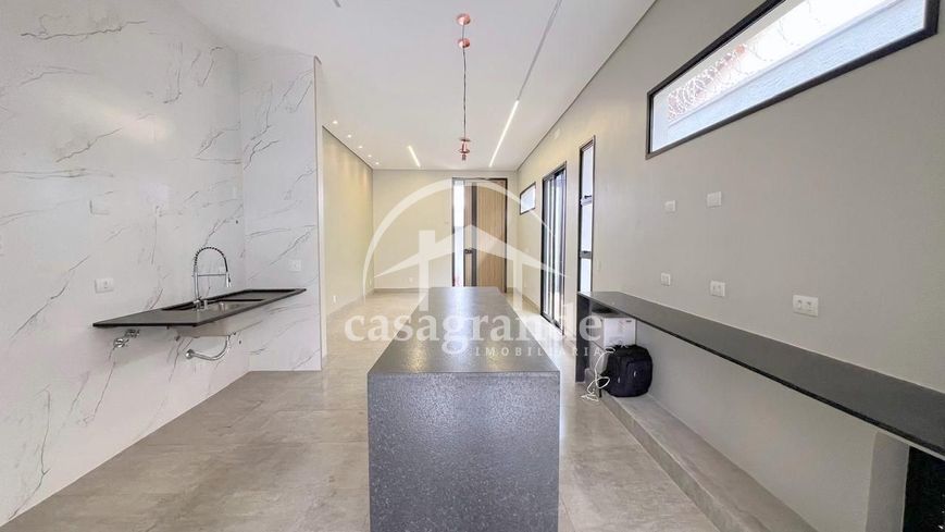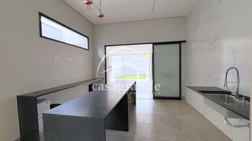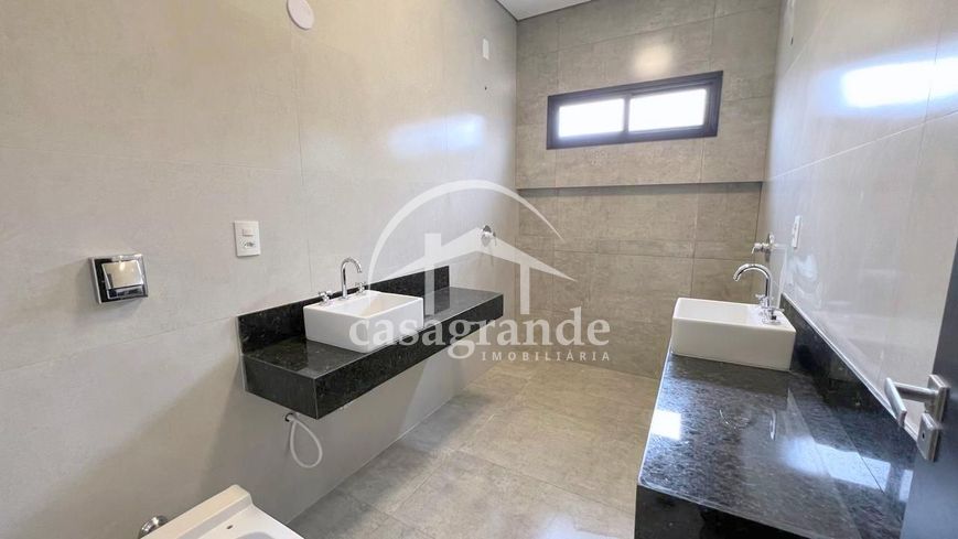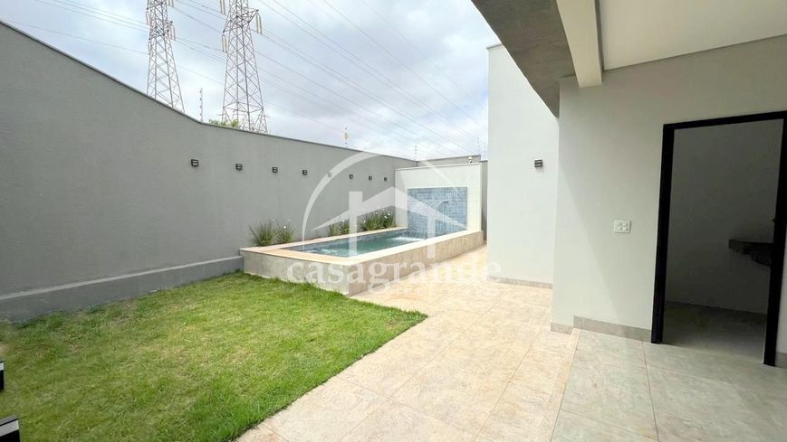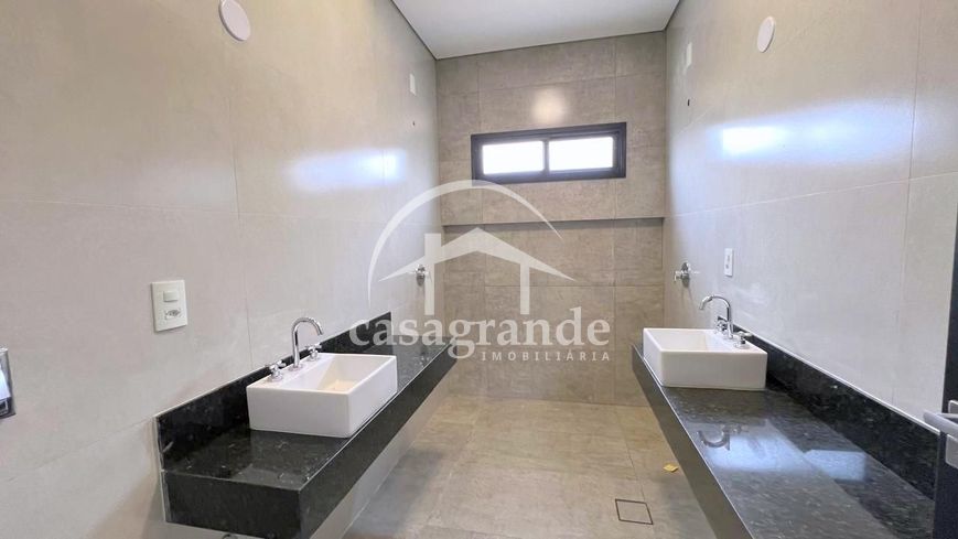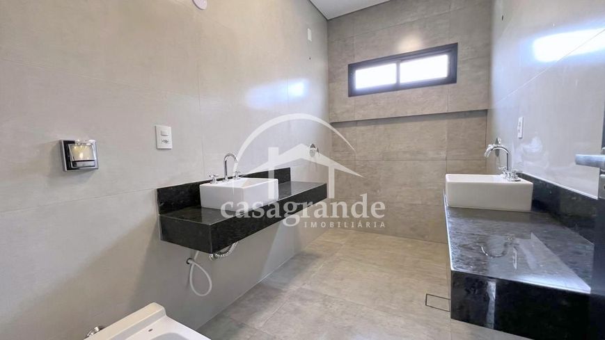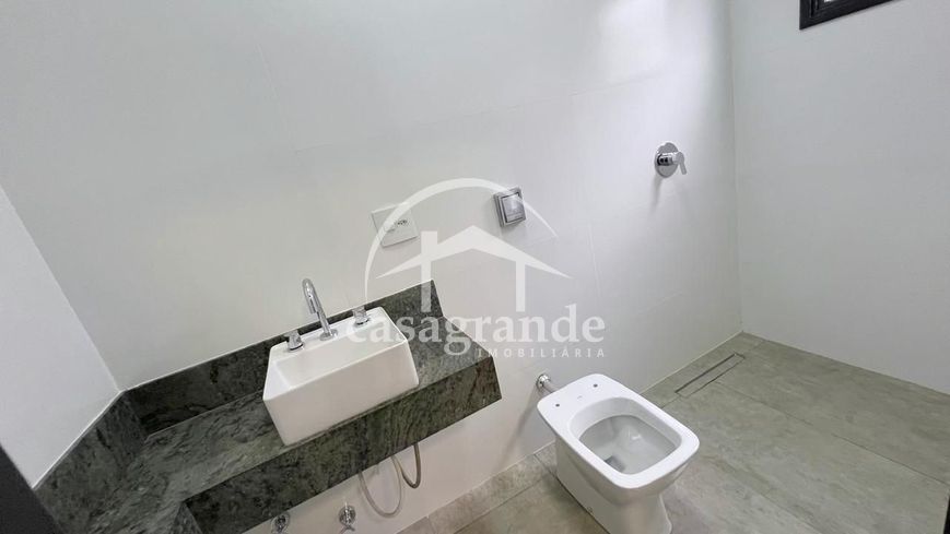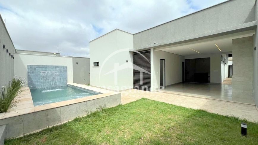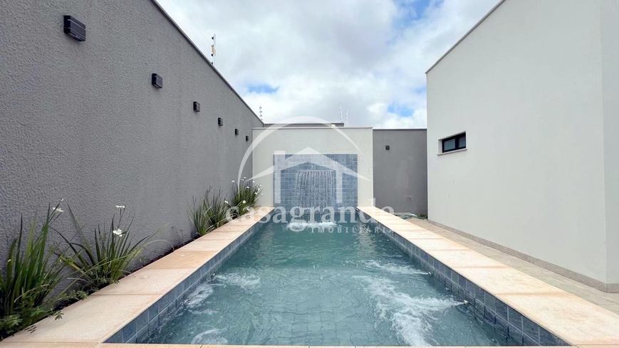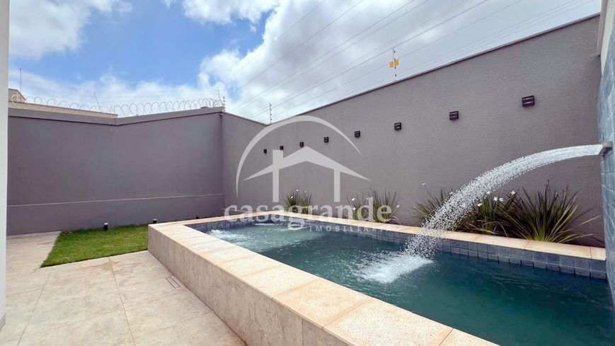 Linda casa com garagem para 4 carros sendo 3 cobertas, piso em porcelanato com rodapés embutidos, sala com pé direito alto, cozinha americana e ilha central, bancadas em granito, 3 suites todas com persianas elétricas, sendo uma suíte Master com closet e banho com duas bancadas independentes e chuveiro duplo com torneiras monocomando, área bônus que pode ser usada como escritório ou brinquedoteca e também como segundo closet para suíte master, lavabo, área gourmet, piscina com prainha e cascata aquecida por sistema solar, paisagismo, banheiros com nichos com iluminação em LED, forro em gesso com iluminação pronta, iluminação externa pronta. Consertina eletrificada, sistema de segurança câmeras instaladas e alarme, aquecimento solar, preparada para automação e sistema fotovoltaico. Lote 360m2.
