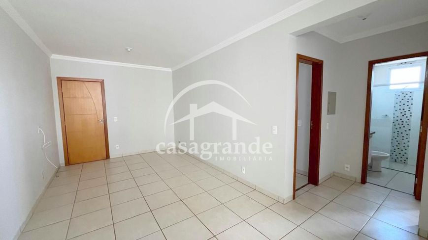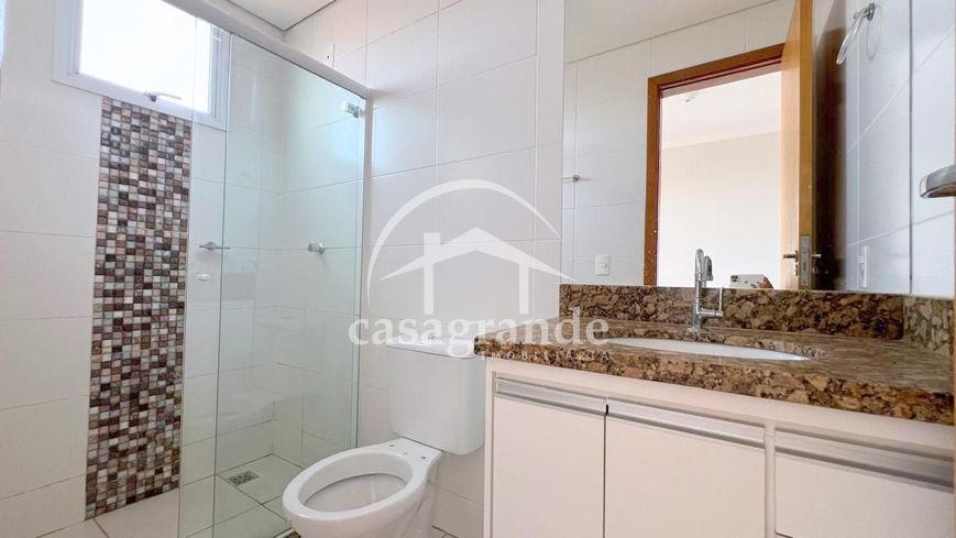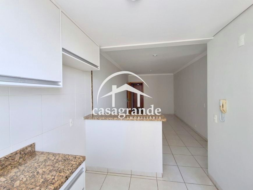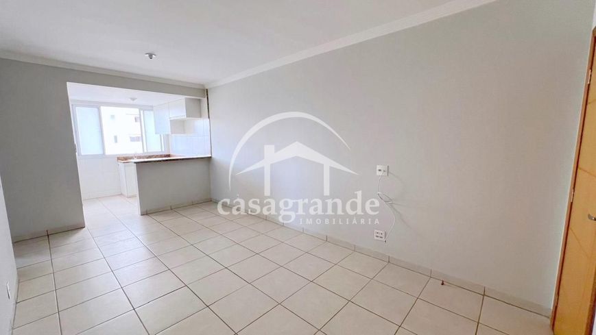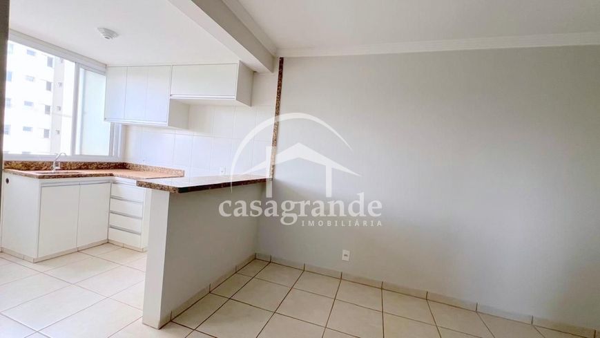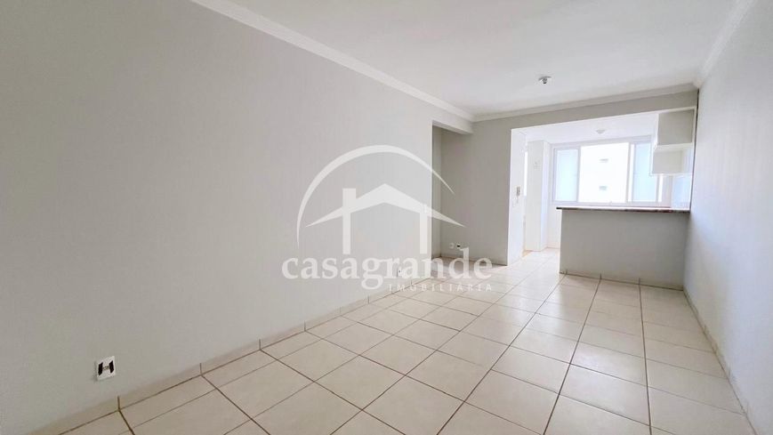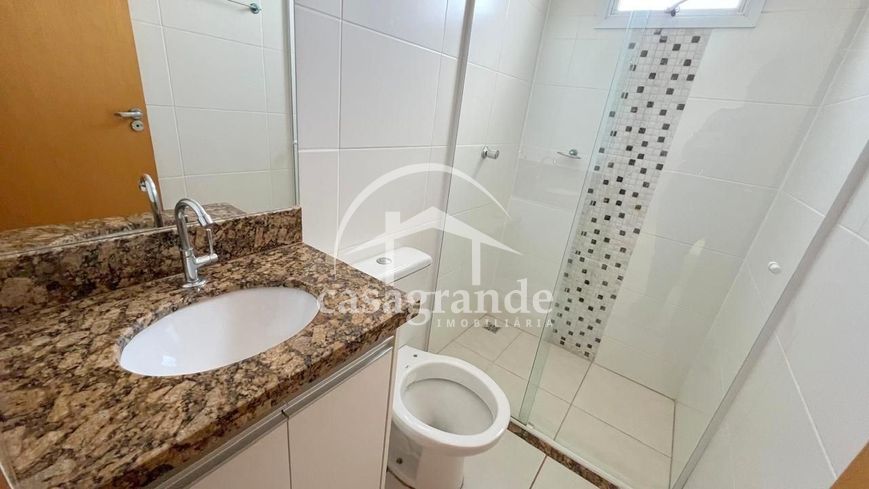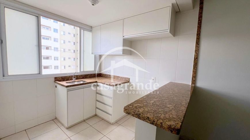 Apartamento com sala em dois ambientes, banheiro social com espelho, box e armário sob pia, dois quartos, sendo um suíte com armário, box e armário sob a pia, cozinha americana com armaários, lavanderia separada, uma vaga de garagem, condominío com salão de festas.