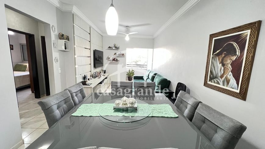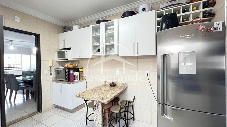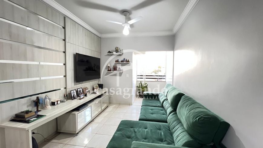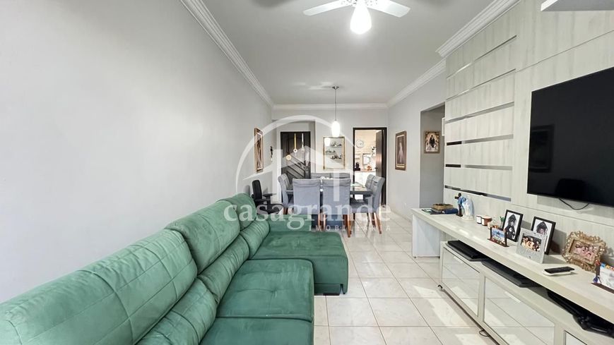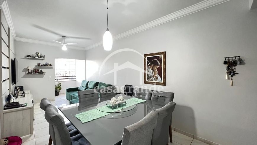 Apartamento com sala em dois ambientes com sacada integrada, painel, rack, ventilador de teto, banheiro social, 03 quartos sendo 01 suíte com ar condicionado, cozinha e área de serviço separada. Armários planejados em 02 quartos, banheiros, cozinha e área de serviços. 02 vagas de garagens em linha, 01 comodo de depósito na garagem. Área privativa: 91,08M².