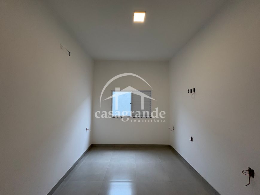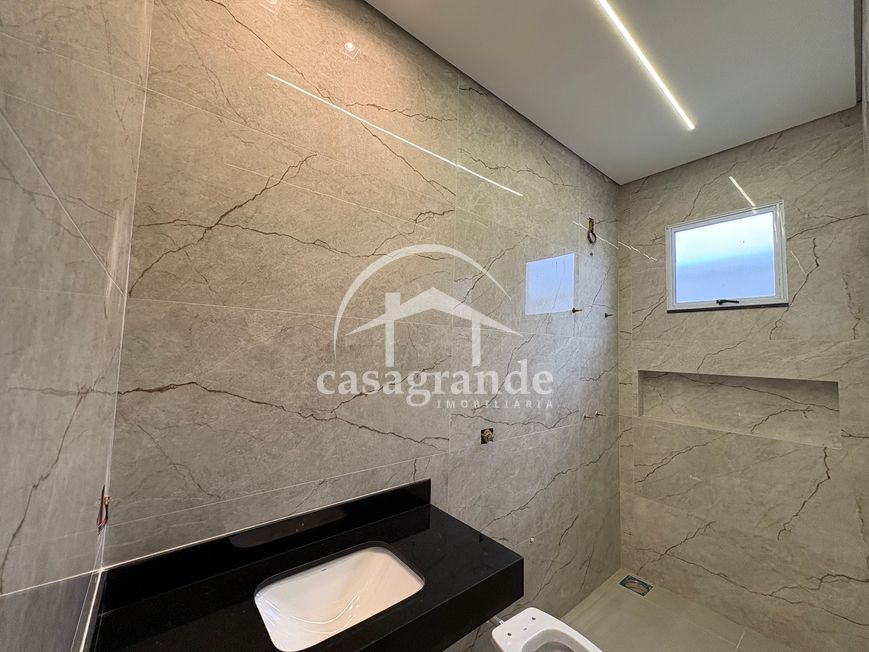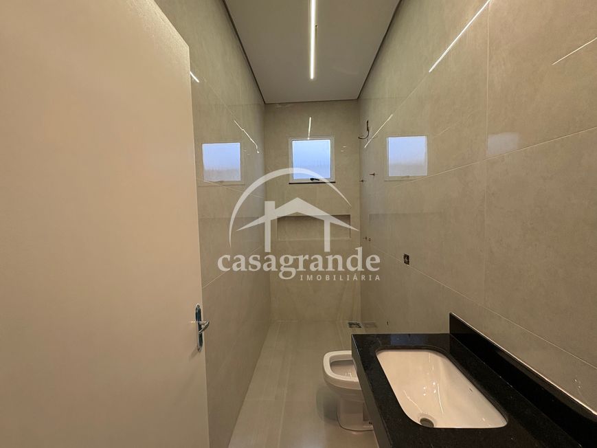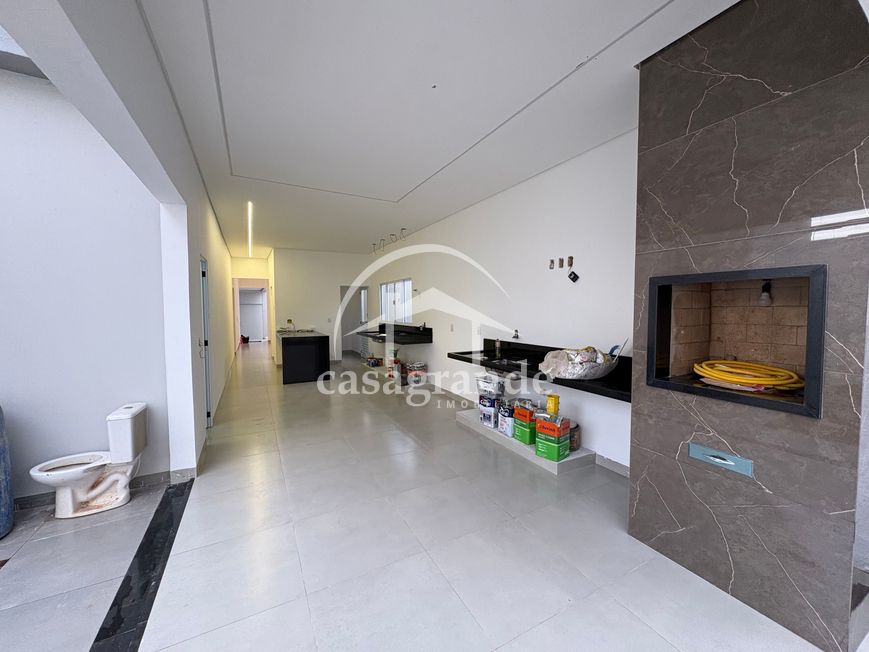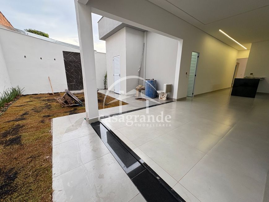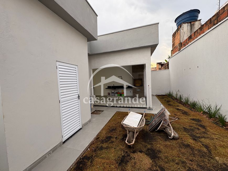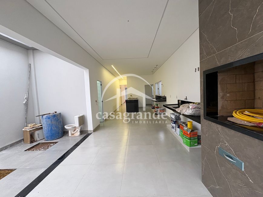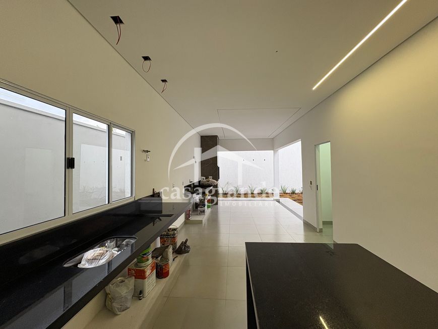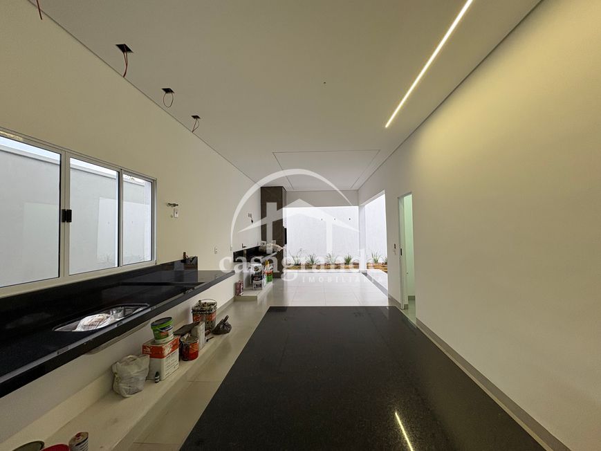 Casa com sala em 2 ambientes, 3 quartos, sendo 1 suíte com closet, lavabo, cozinha e varanda gourmet com churrasqueira, banheiro externo, área de serviço, quintal gramado com ducha, vaga para 2 carros cobertos. Sala com pé direito duplo 4,30 m, ponto de ar condicionado em todos os cômodos, e preparação para colocar boiler, tubulação pronta. Área construída 170 m², área de terreno 250 m².