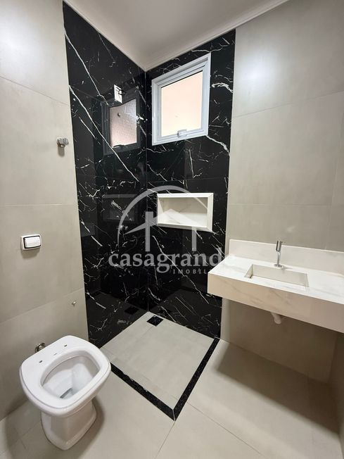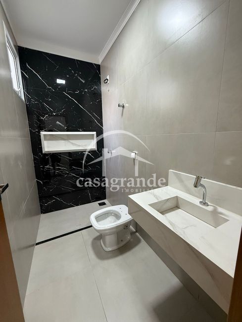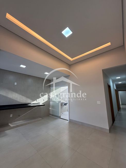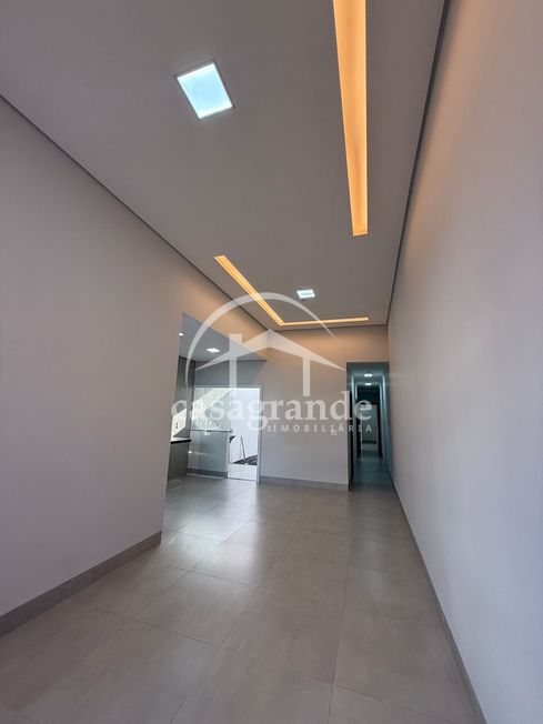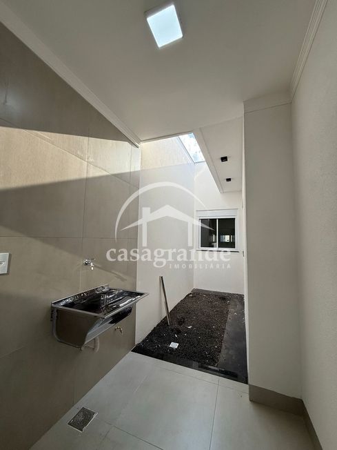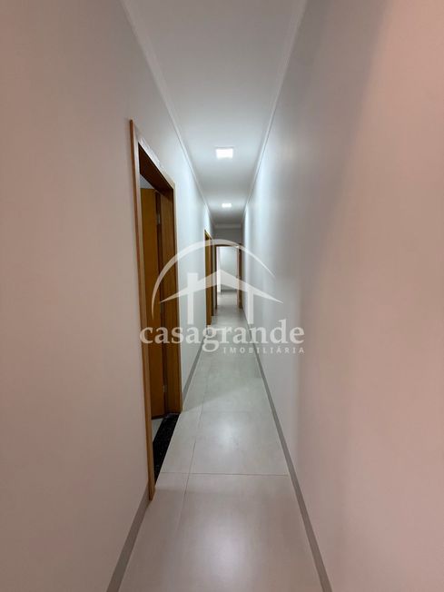 Casa nova com sala de pé direto duplo, três quartos sendo um suíte com closet, banheiro social, cozinha americana, espaço gourmet com churasqueira e pia, área de serviço, duas vagas de garagem, gáz canalizado, com área construida de 85,20m² no terreno de 150 m².