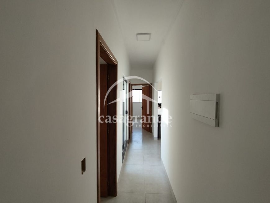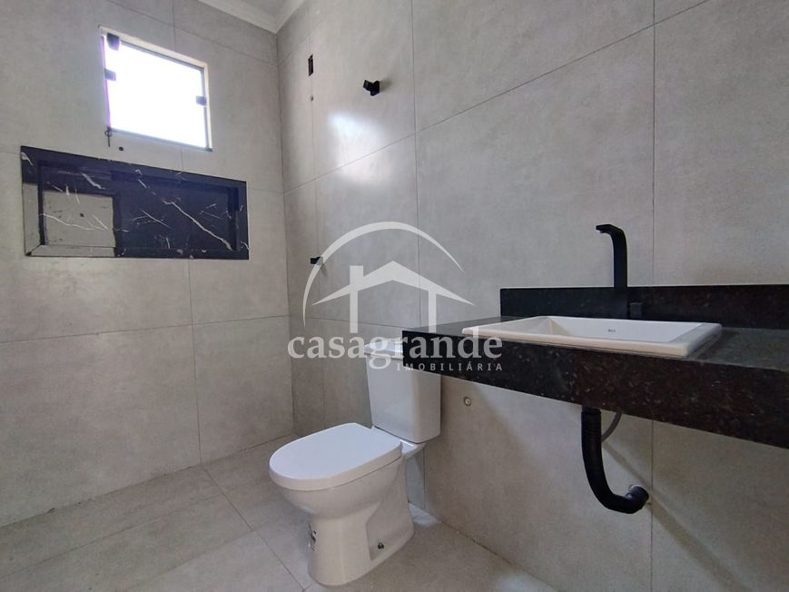 Casa com sala em 2 ambientes, claraboia, 3 quartos, sendo 1 suíte, banheiro social, cozinha com bancada, área de serviço, quintal amplo, 3 vagas de garagem ampla. Cerca concertina. Área construída de 90 m², área do terreno 185,84 m². Próxima a supermercado.