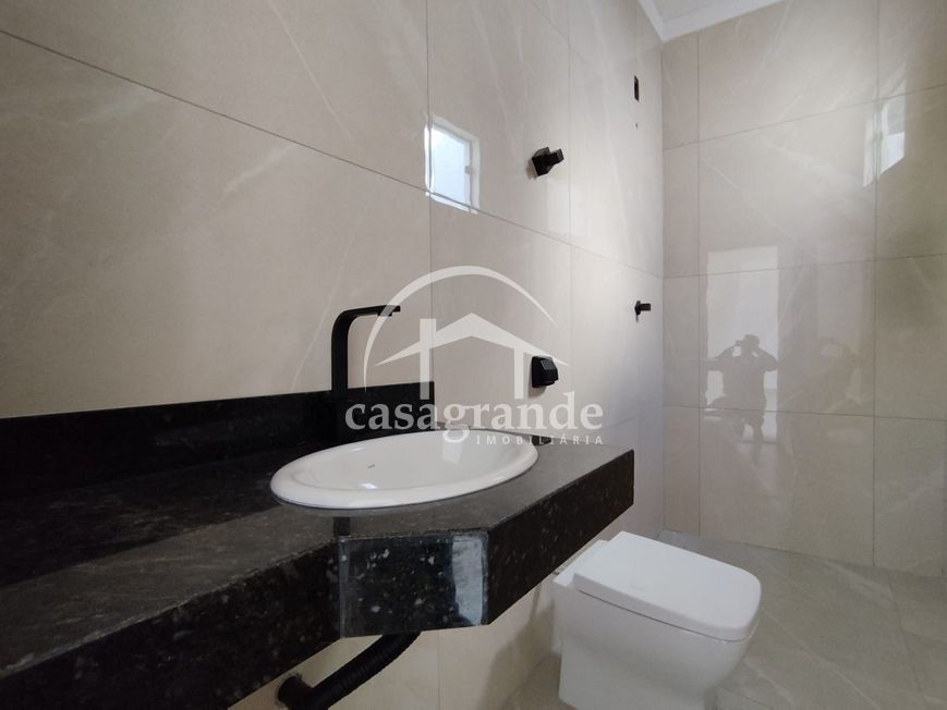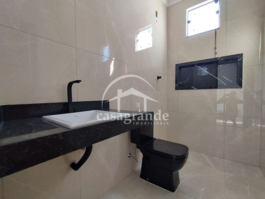 Casa com sala em 2 ambientes, claraboia, 3 quartos, sendo 1 suíte, banheiro social, cozinha com bancada, área de serviço, quintal amplo, 3 vagas de garagem ampla. Cerca concertina. Área construída de 90 m², área do terreno 187,18 m². Próxima a supermercado.