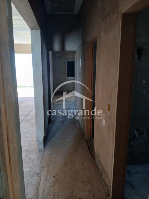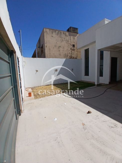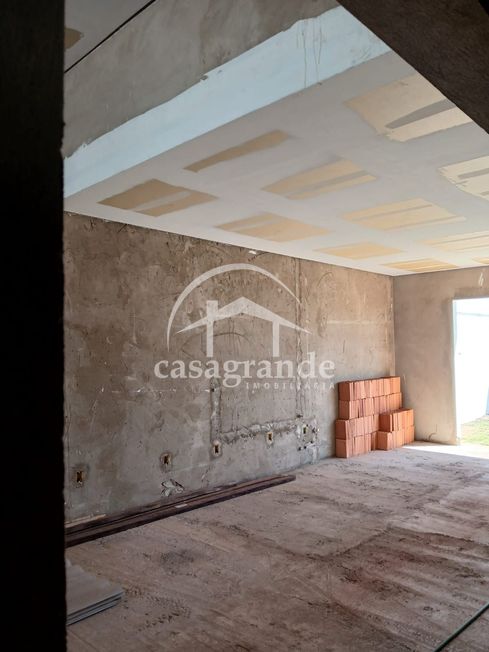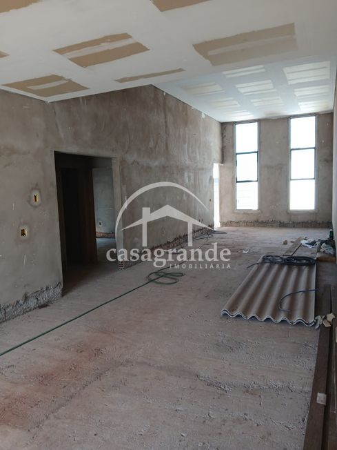 Casa com sala ampla em 2 ambientes com pé direito de 4,50 m, 3 quartos, sendo 1 suíte, banheiro social, cozinha em ilha com área gourmet integrado, área de serviço. 4 vagas de garagem, 2 cobertos e 2 descobertos. Esquadrilhas linha suprema, casa toda com forro de gesso, calçada pedra portuguesa, porcelanato 80x80, pintura externa em lamato, portão eletrônico. Área construída de 170 m², área do terreno 300 m².