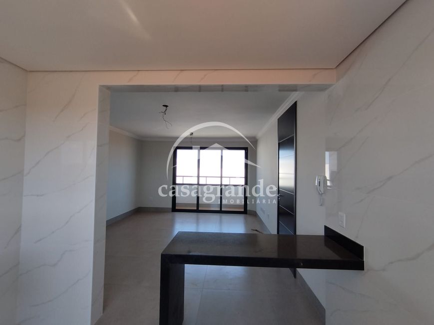 Sala em 2 ambientes com sacada e churrasqueira, banheiro social, 3 quartos, sendo 1 suíte com closet, cozinha com conceito aberto com bancadas em granito, área de serviço, 2 vagas de garagem e elevador. Área privativa 115 m². Piso porcelanato e rodapé embutido, esquadrias e portas de excelente qualidade. Área comum Playground e banheiro acessível. Ótima localização e fácil acesso as principais vias da cidade.