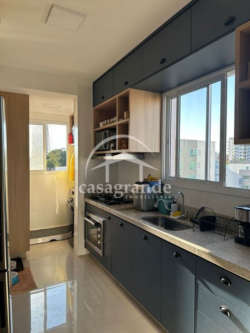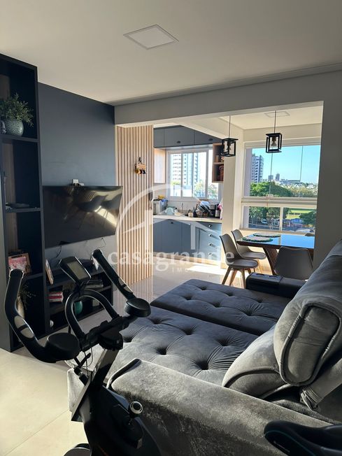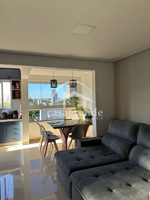 Sala em 2 ambientes, banheiro social, 2 quartos, sendo 1 suíte, cozinha, área de serviço, 2 vagas de garagem. Área privativa 69,53 m². Elevador. Apartamento com acabamento alto padrão com porcelanato, bancadas em granito, iluminação planejada e teto rebaixado em gesso. Todo montado com móveis planejados, ar condicionado, cortinas sob medida, cooktop, forno e depurador. Condomínio possui academia equipada, salão de festas e hall de entrada decorado e portaria. Localização privilegiada, apenas 2 km do Praia Clube, em um dos bairros mais valorizados de Uberlândia.
