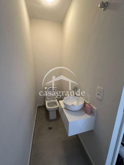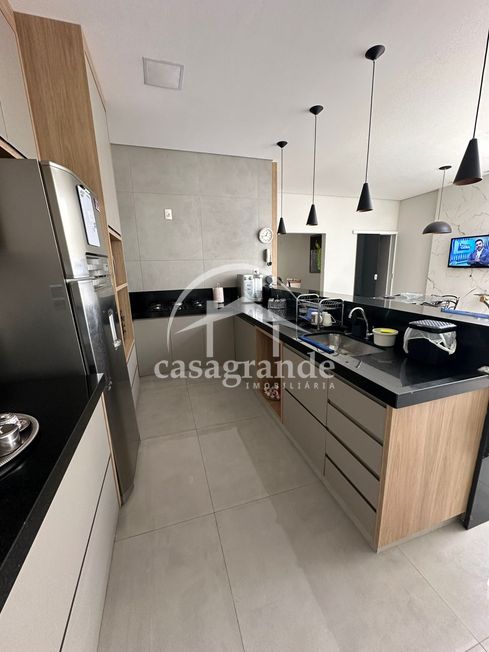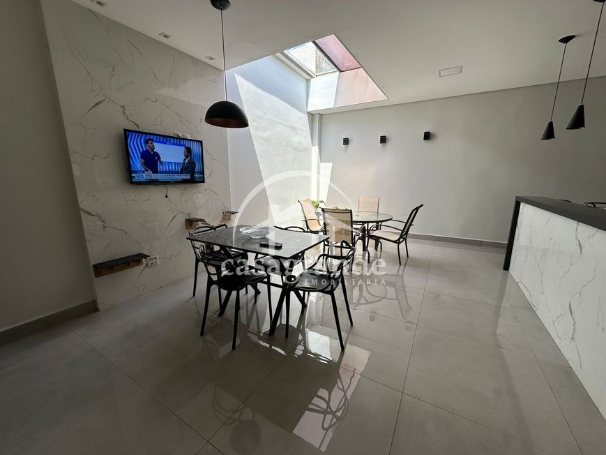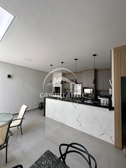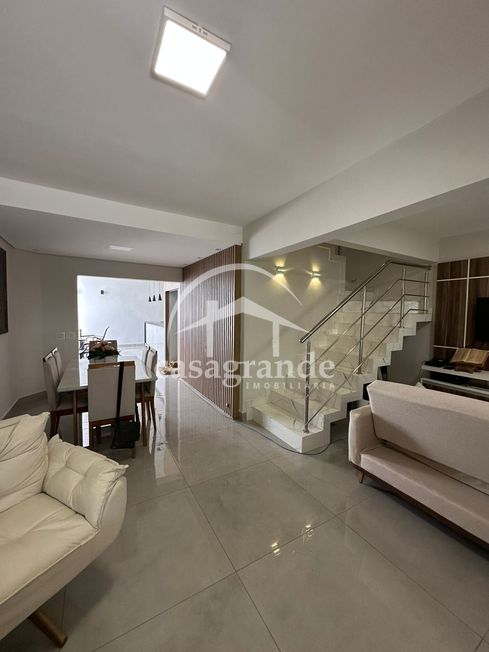 Casa em 2 pavimentos com excelente acabamento. 1° piso: Sala em 2 ambientes, sala de jantar, escritório, lavabo, cozinha americana com varanda gourmet integrada e teto retrátil, banheiro social, área de serviço com armários. 2° piso: 3 quartos sendo 1 suíte. 3 vagas de garagem. Fino acabamento e iluminação. Área construída de 147 m², área de terreno de 214,26 m². Condomínio com área de lazer completa, piscina, salão de festas, quiosques, academia e quadras de esportes.