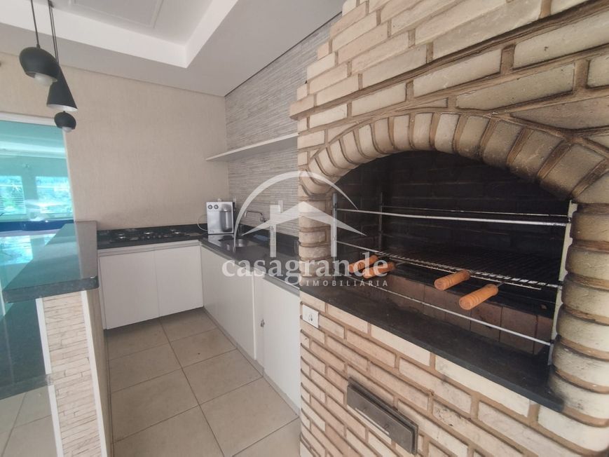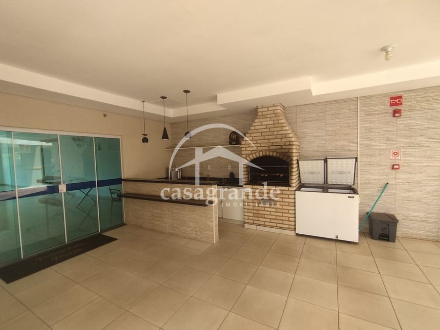Sala em 2 ambientes com sacada, banheiro social, 3 quartos, sendo 1 suíte, cozinha ampla, área de serviço, 2 vagas de garagem. Cozinha e banheiros com armários. Área privativa 79,65 m². Elevador. Condomínio possui salão de festas, área gourmet com churrasqueira, freezer e cooktop, playground, mini-mercado, portaria 24 hrs. Ótima localização próximo ao Praia Clube.
