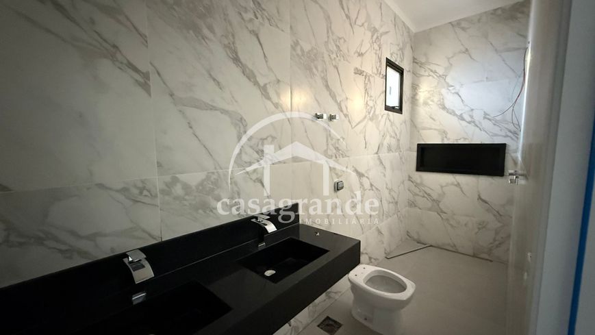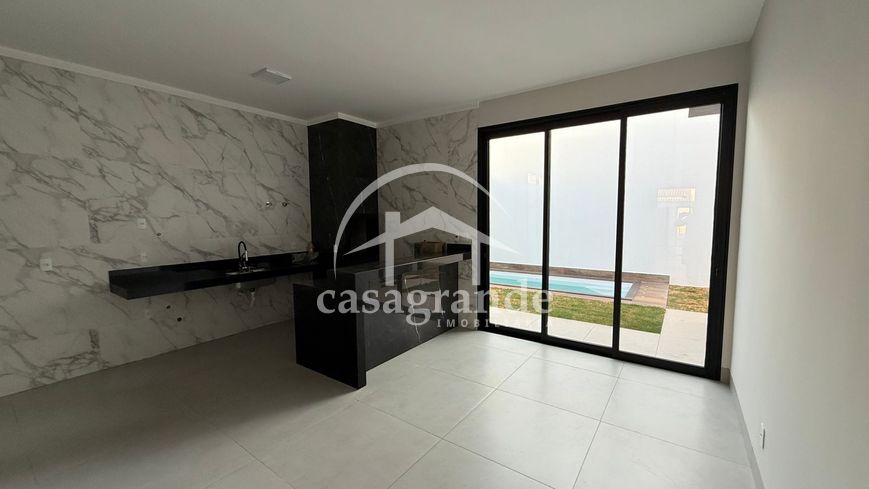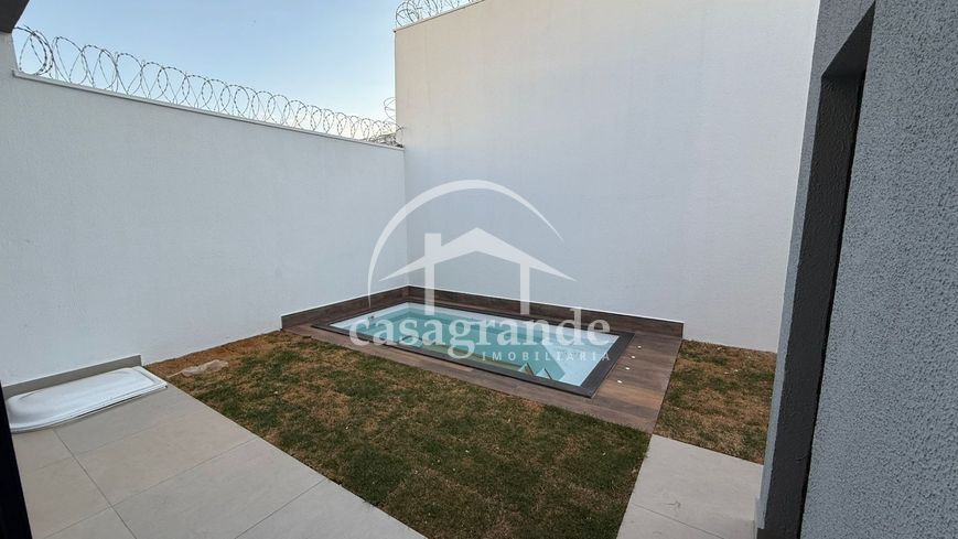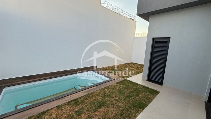 Sala em 2 ambientes com pé direito duplo, lavabo, escritório, 3 quartos, sendo 1 suítes com closet, dupla pia e duplo ponto de chuveiro, 2 semi suítes, cozinha gourmet com churrasqueira carvão, área de serviço, piscina aquecida. 3 vagas de garagem. Acabamento de primeira, preparação para ar condicionado em todos os cômodos e preparação para água quente nos banheiros e cozinha, cerca concertina. Área construída de 150 m², área do terreno 250 m².