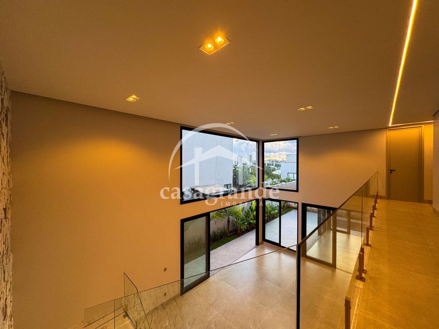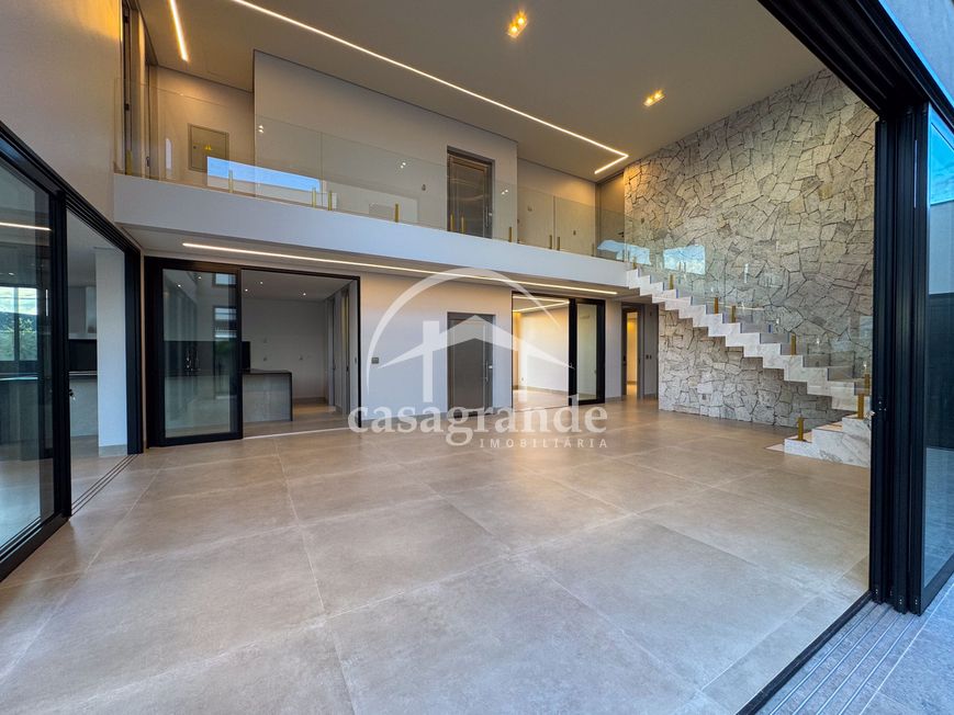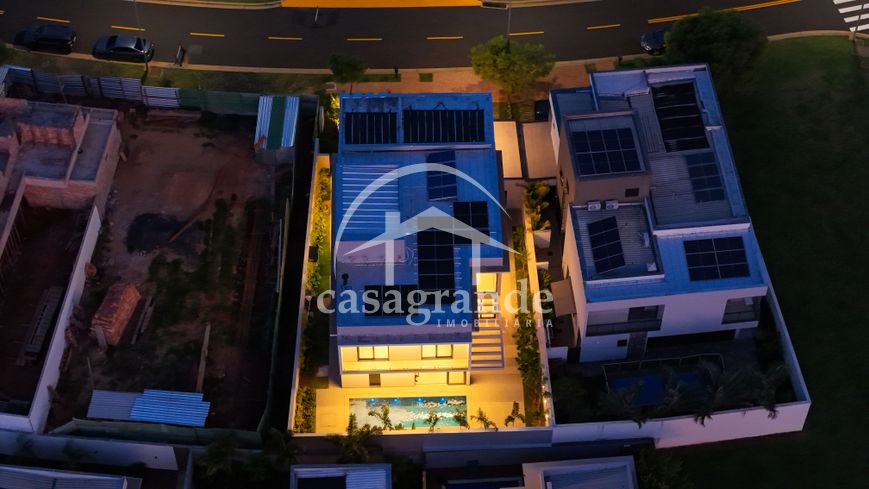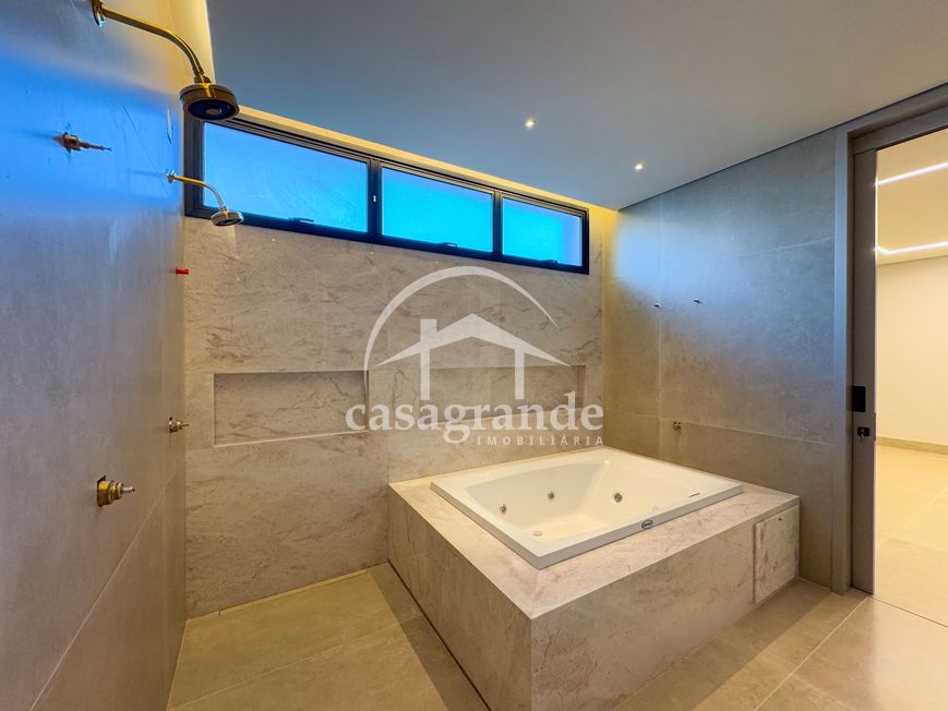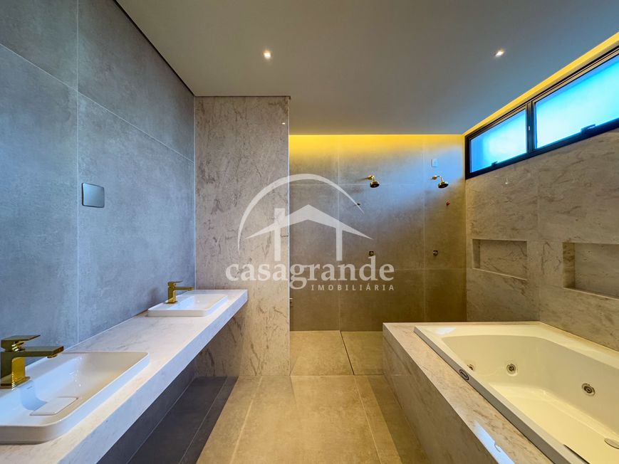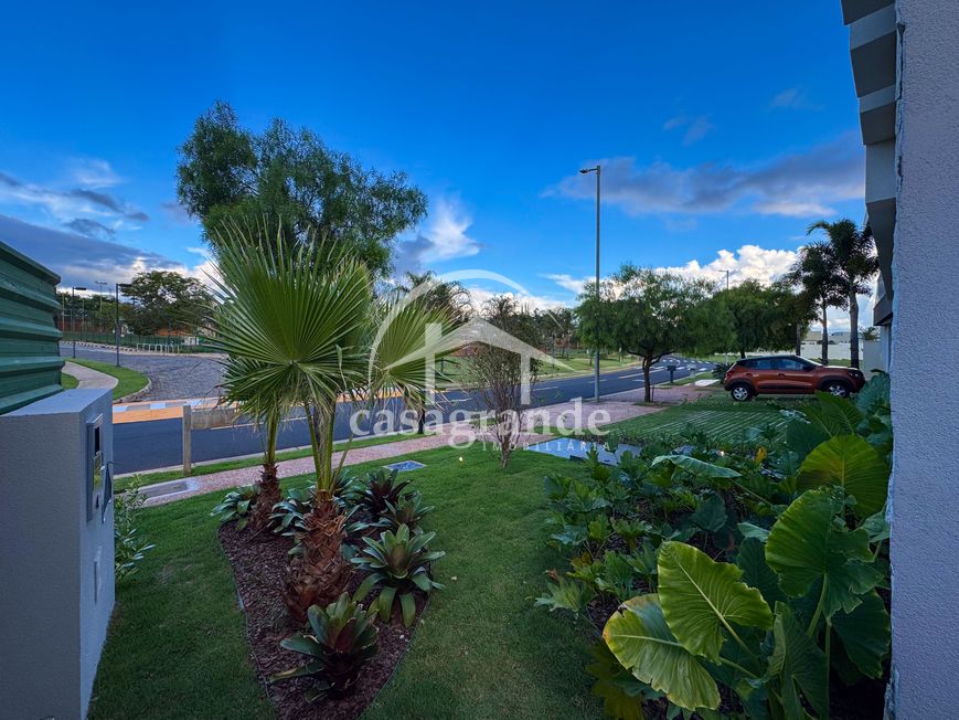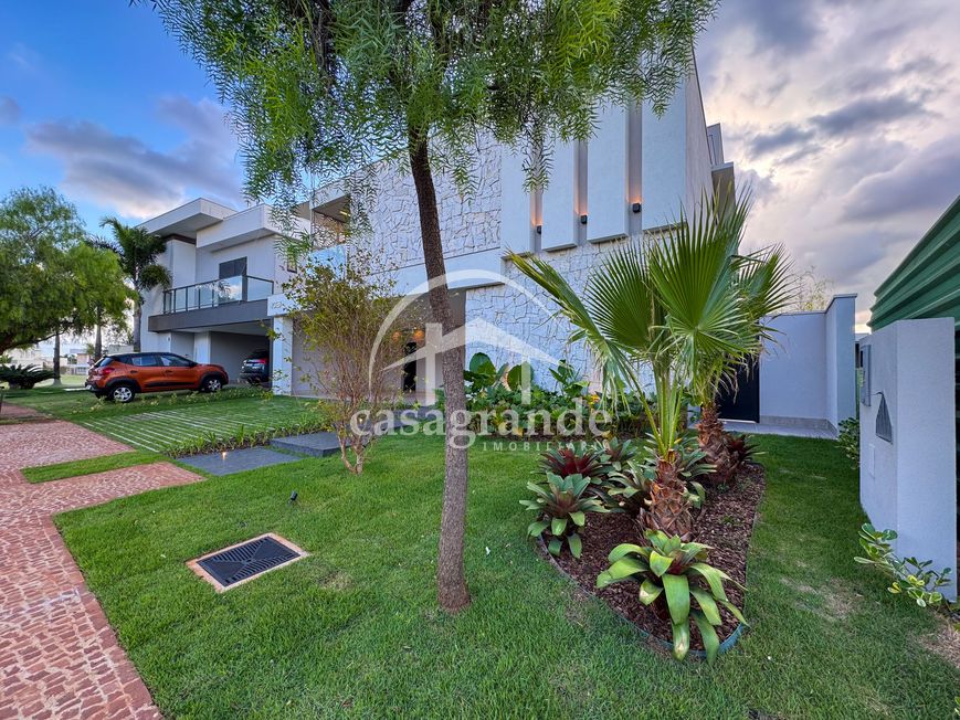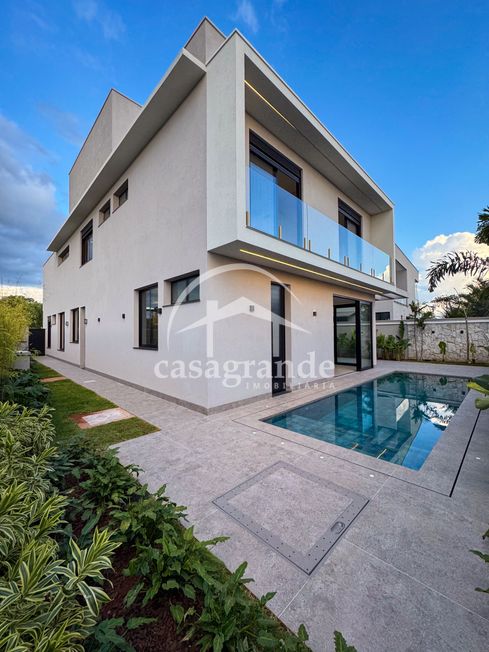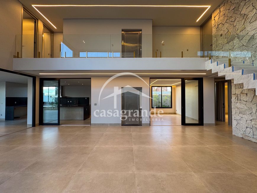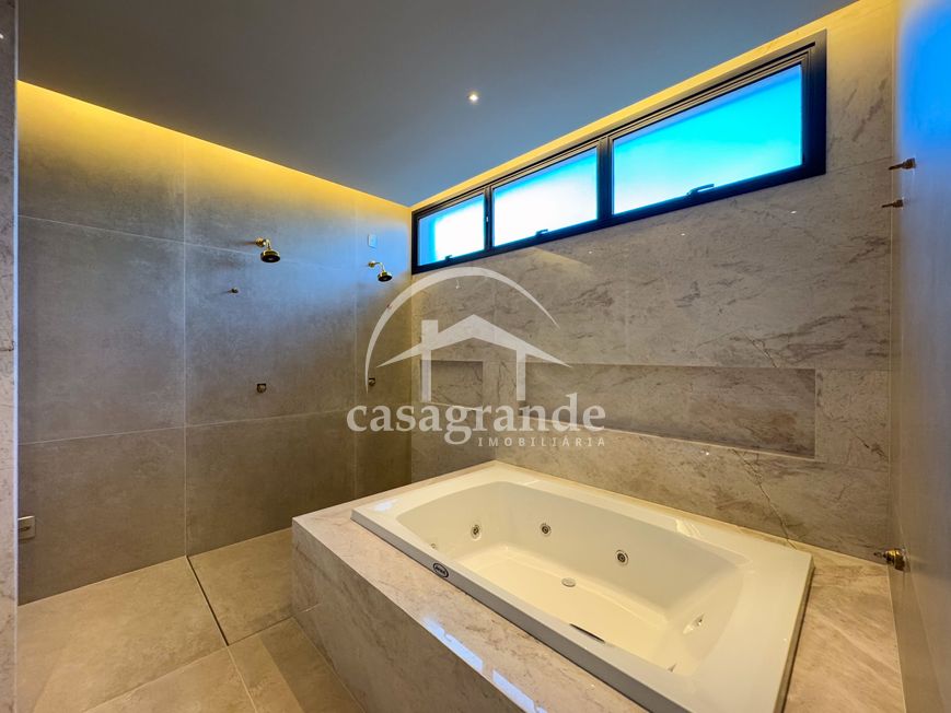 Casa alto padrão 1° piso: Sala multiuso, banheiro social, sala de tv, ampla sala de estar e jantar integradas com pé direito duplo, lavabo, cozinha, área gourmet, área de serviço com entrada interna e externa e elevador. 2° piso: 1 suíte Master com closet, sacada privativa e banheiro com banheira, 3 suítes adicionais, todas com excelente iluminação natural e ventilação, sendo 2 com sacadas. Área externa piscina aquecida com hidromassagem e banheiro de apoio. Condomínio oferece piscina adulto com raia de 25m, quadra de tênis epoliesportiva, salão de festa com espaço gourmet, fitness Center by Reebok, mais de 145 mil m² de áreas verdes, clube com mais de 19mil m², espaço para caminhadas, praças e parques infantis, natureza preservada, segurança 24 horas.