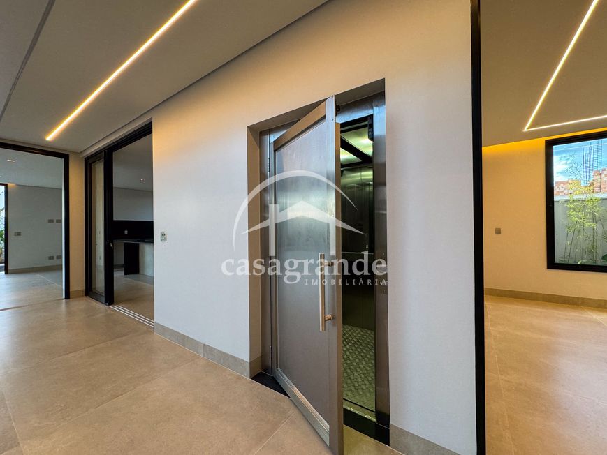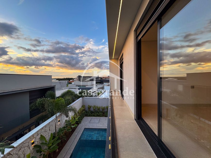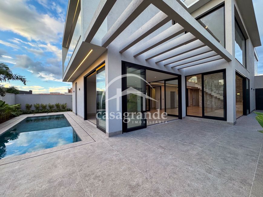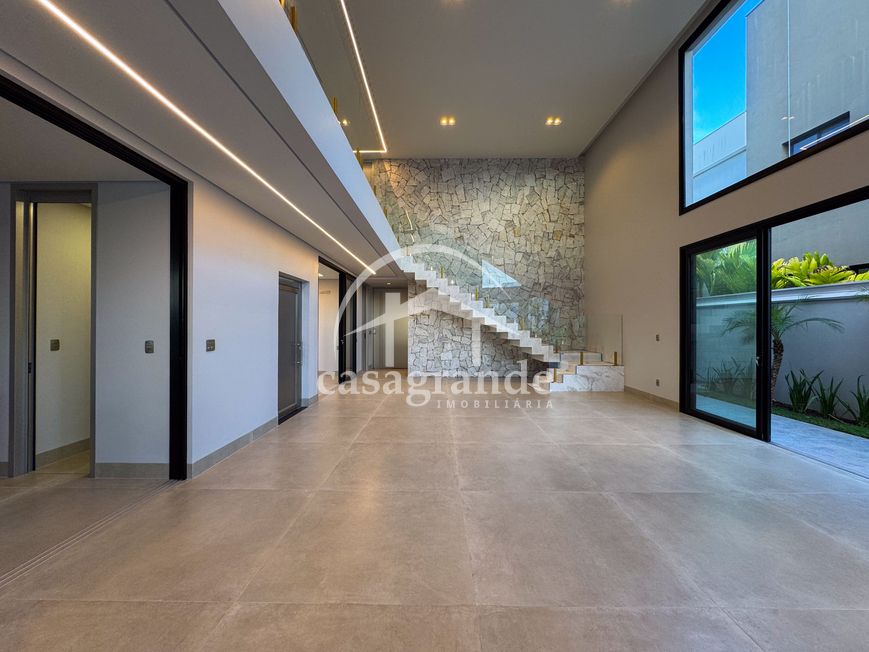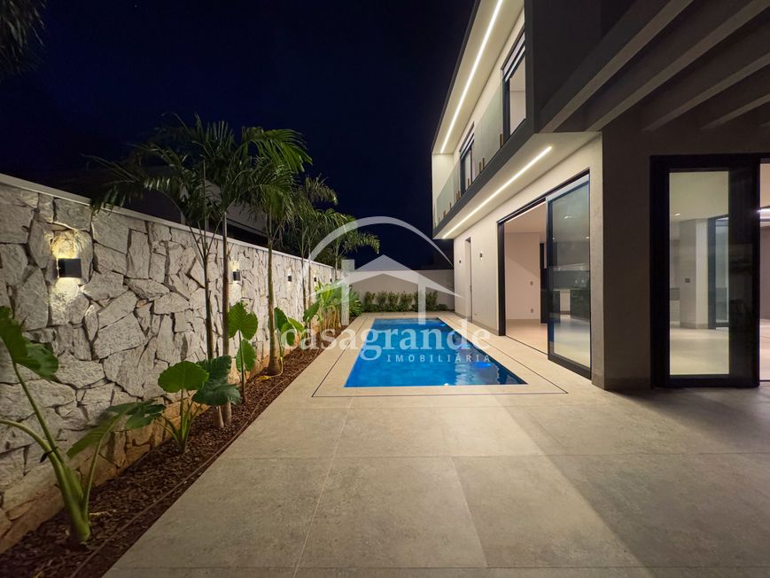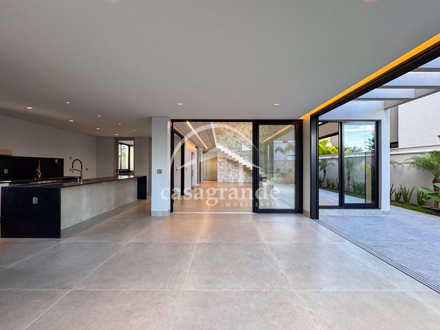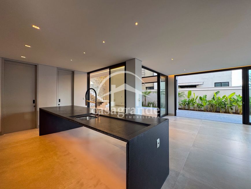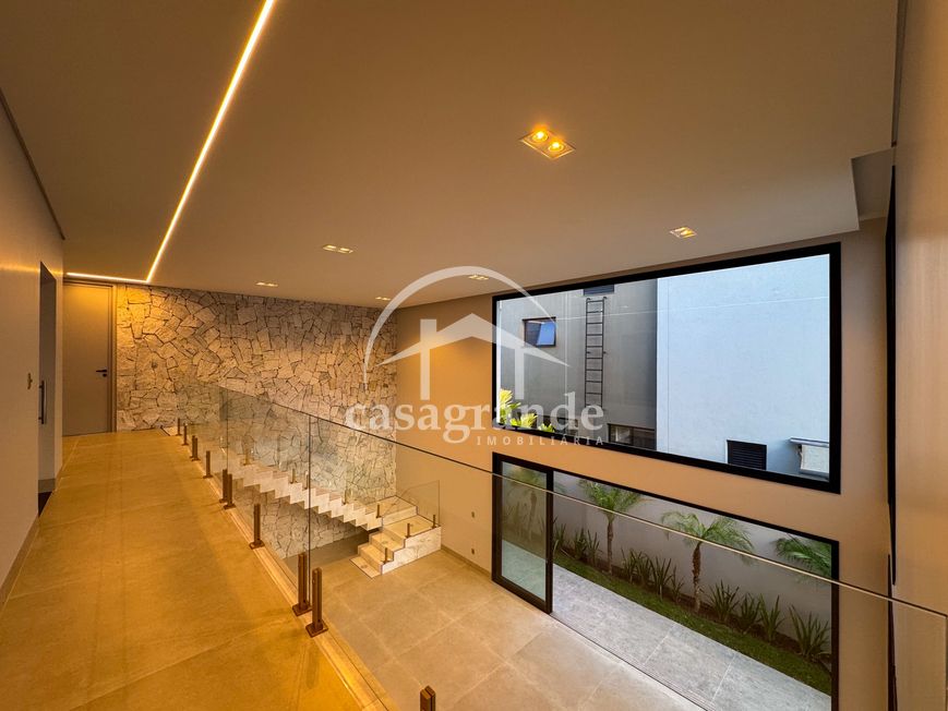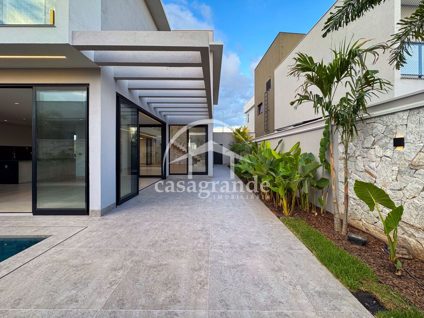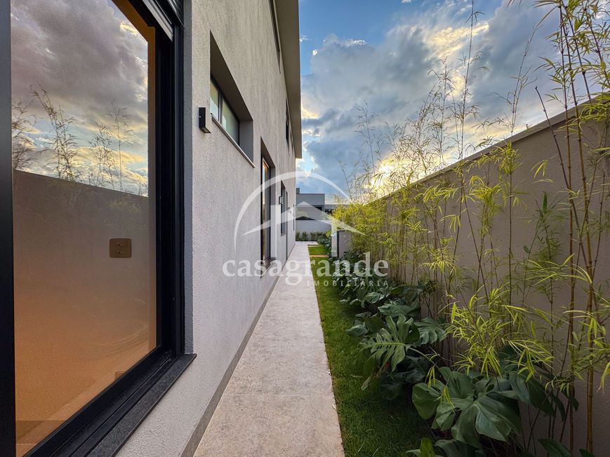 Casa alto padrão 1° piso: Sala multiuso, banheiro social, sala de tv, ampla sala de estar e jantar integradas com pé direito duplo, lavabo, cozinha, área gourmet, área de serviço com entrada interna e externa e elevador. 2° piso: 1 suíte Master com closet, sacada privativa e banheiro com banheira, 3 suítes adicionais, todas com excelente iluminação natural e ventilação, sendo 2 com sacadas. Área externa piscina aquecida com hidromassagem e banheiro de apoio. Condomínio oferece piscina adulto com raia de 25m, quadra de tênis epoliesportiva, salão de festa com espaço gourmet, fitness Center by Reebok, mais de 145 mil m² de áreas verdes, clube com mais de 19mil m², espaço para caminhadas, praças e parques infantis, natureza preservada, segurança 24 horas.