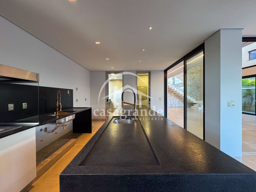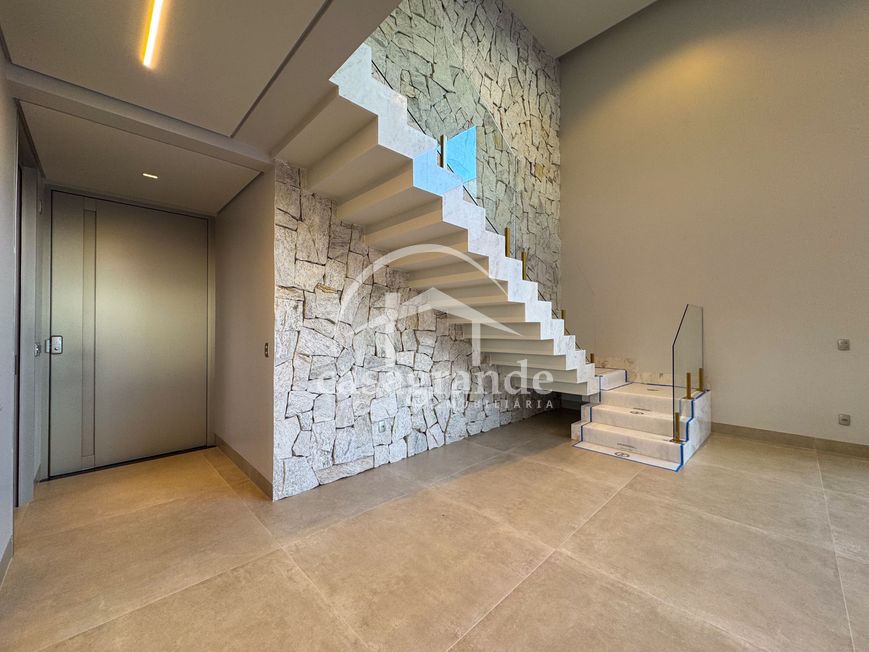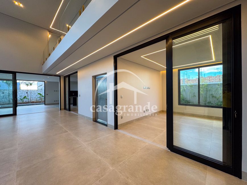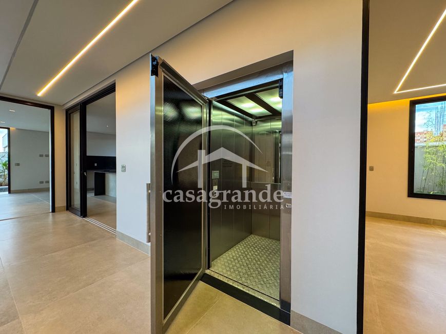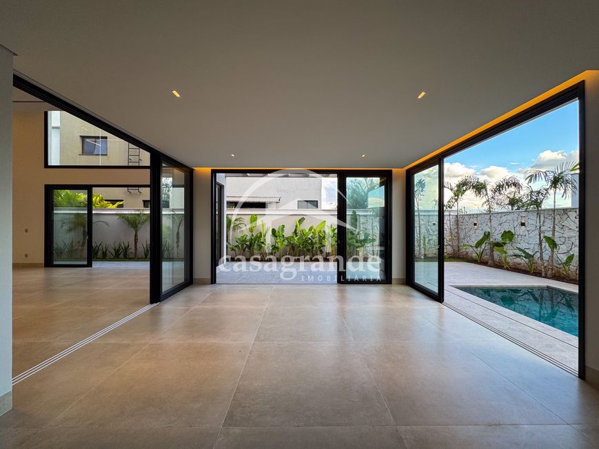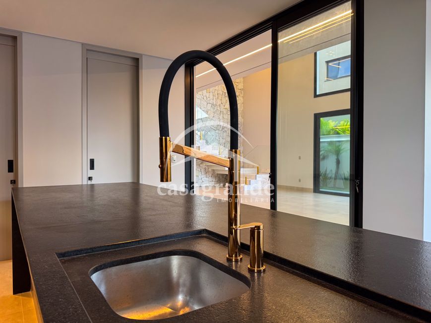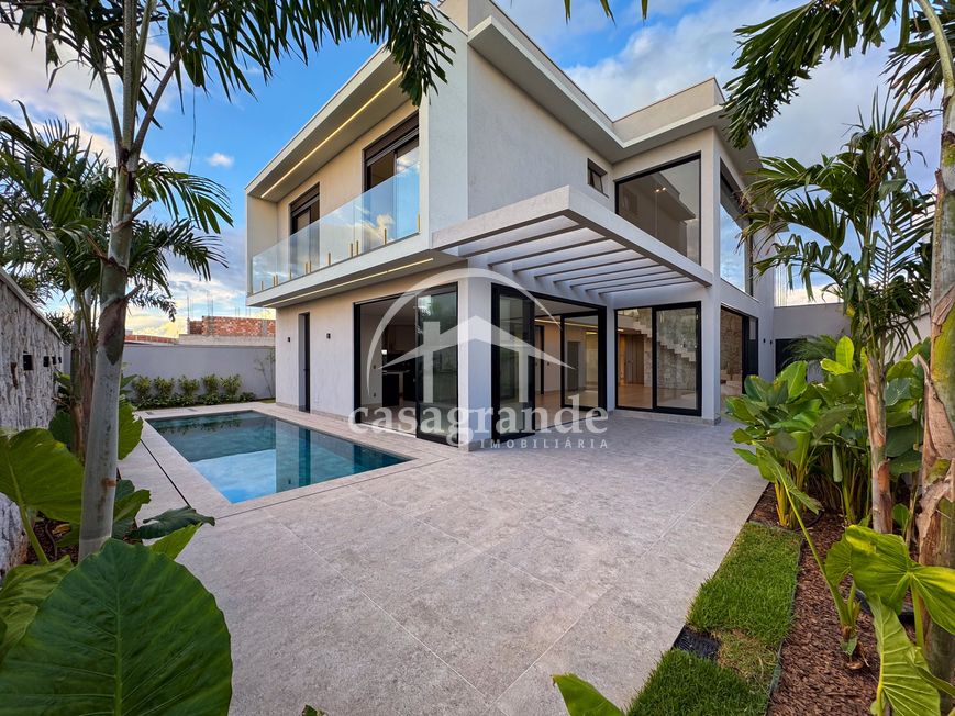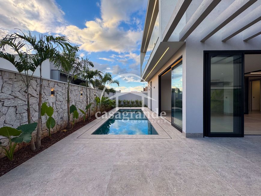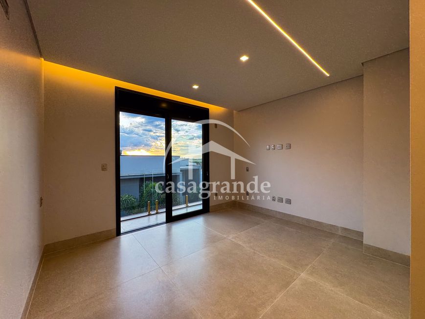 Casa alto padrão 1° piso: Sala multiuso, banheiro social, sala de tv, ampla sala de estar e jantar integradas com pé direito duplo, lavabo, cozinha, área gourmet, área de serviço com entrada interna e externa e elevador. 2° piso: 1 suíte Master com closet, sacada privativa e banheiro com banheira, 3 suítes adicionais, todas com excelente iluminação natural e ventilação, sendo 2 com sacadas. Área externa piscina aquecida com hidromassagem e banheiro de apoio. Condomínio oferece piscina adulto com raia de 25m, quadra de tênis epoliesportiva, salão de festa com espaço gourmet, fitness Center by Reebok, mais de 145 mil m² de áreas verdes, clube com mais de 19mil m², espaço para caminhadas, praças e parques infantis, natureza preservada, segurança 24 horas.