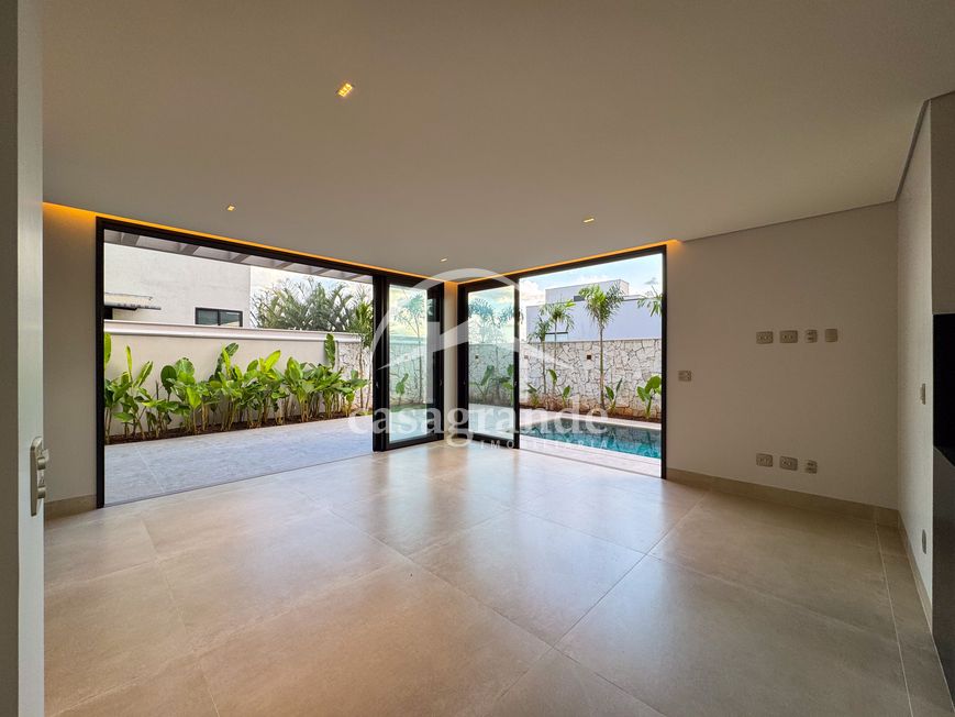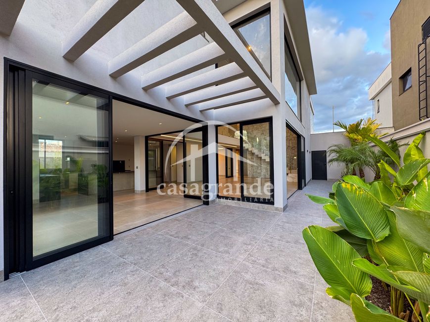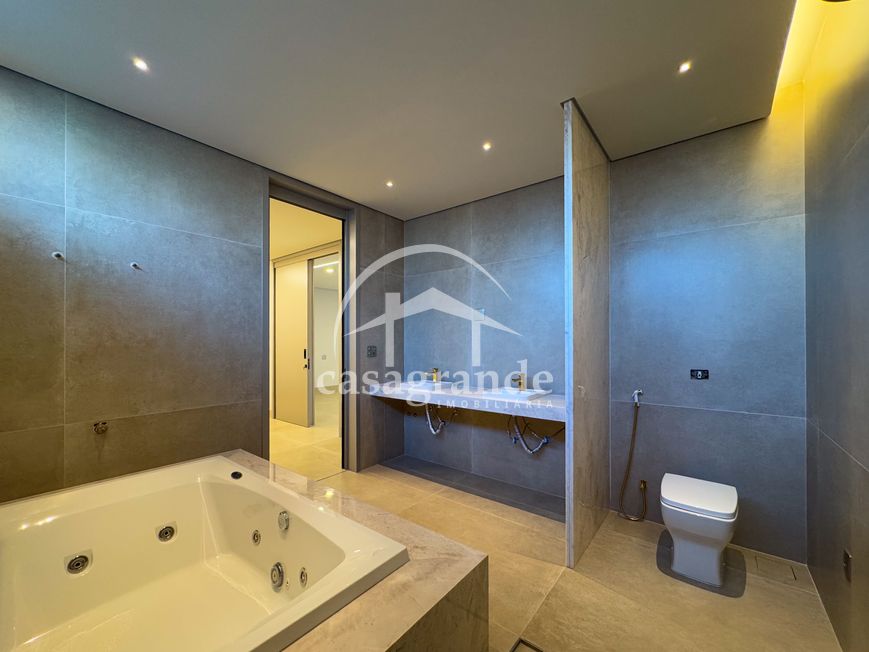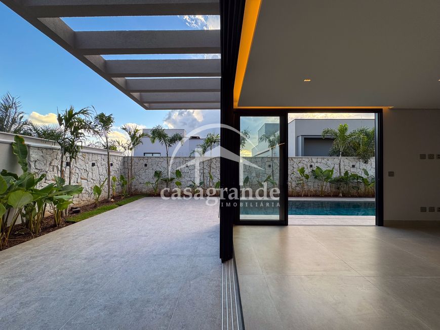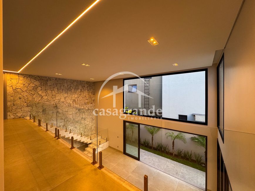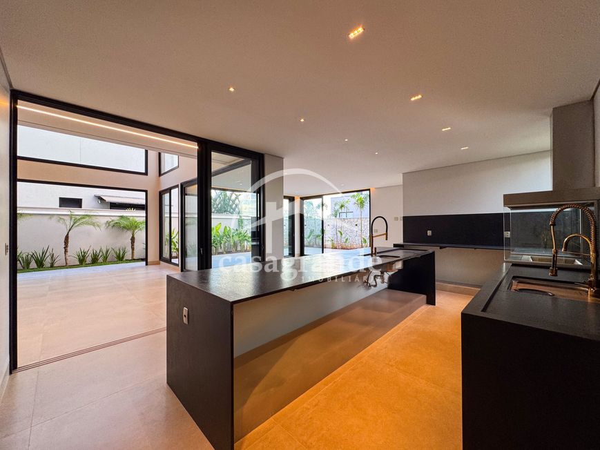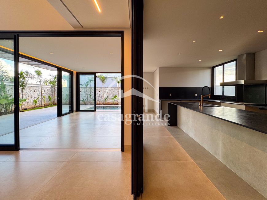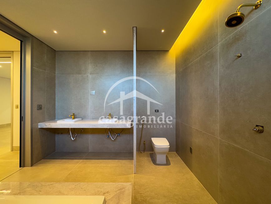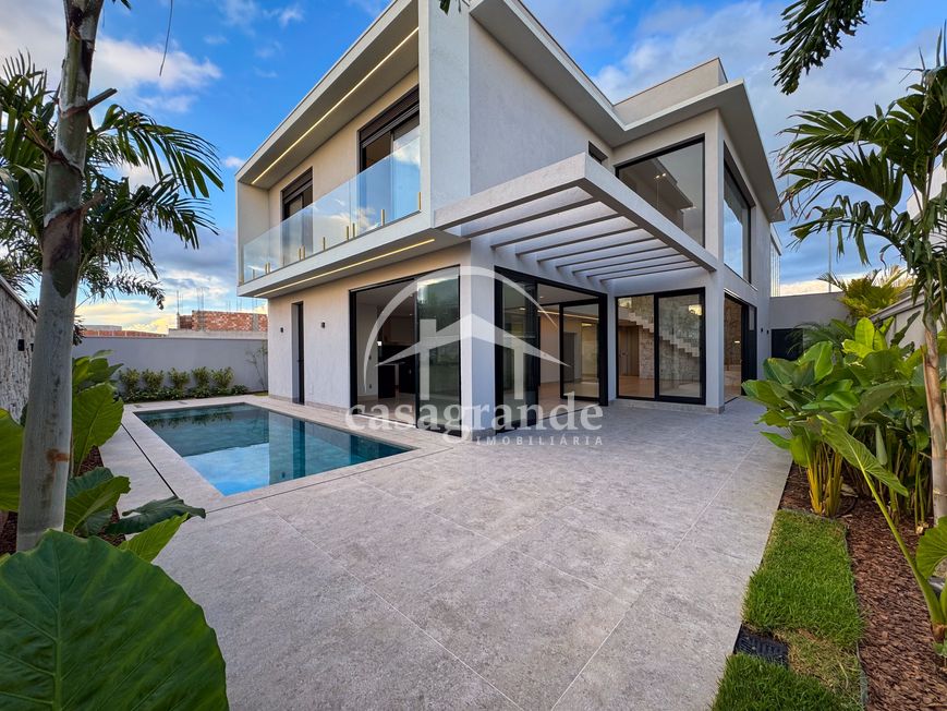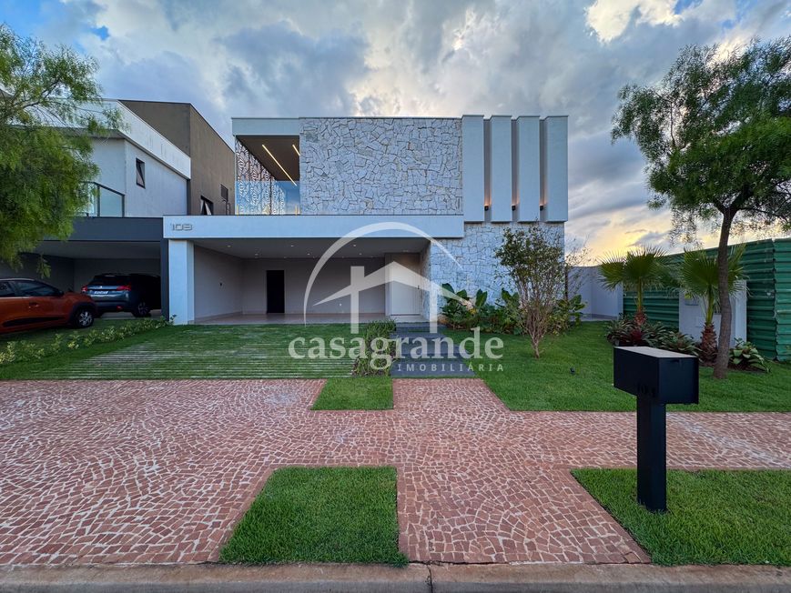 Casa alto padrão 1° piso: Sala multiuso, banheiro social, sala de tv, ampla sala de estar e jantar integradas com pé direito duplo, lavabo, cozinha, área gourmet, área de serviço com entrada interna e externa e elevador. 2° piso: 1 suíte Master com closet, sacada privativa e banheiro com banheira, 3 suítes adicionais, todas com excelente iluminação natural e ventilação, sendo 2 com sacadas. Área externa piscina aquecida com hidromassagem e banheiro de apoio. Condomínio oferece piscina adulto com raia de 25m, quadra de tênis epoliesportiva, salão de festa com espaço gourmet, fitness Center by Reebok, mais de 145 mil m² de áreas verdes, clube com mais de 19mil m², espaço para caminhadas, praças e parques infantis, natureza preservada, segurança 24 horas.