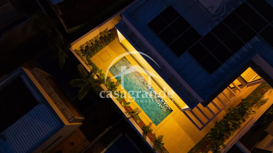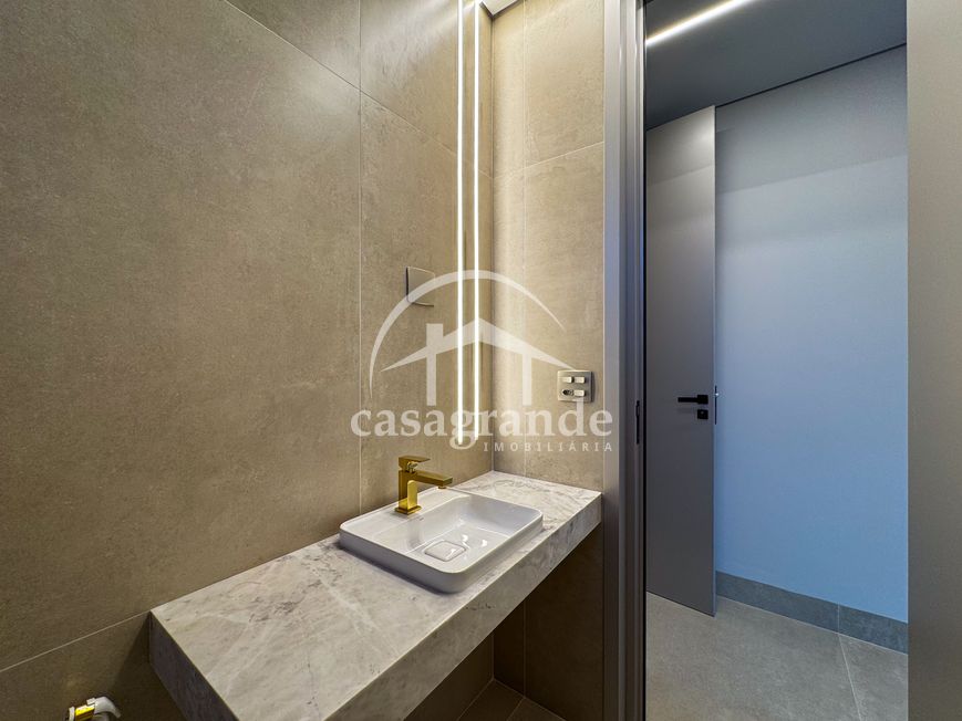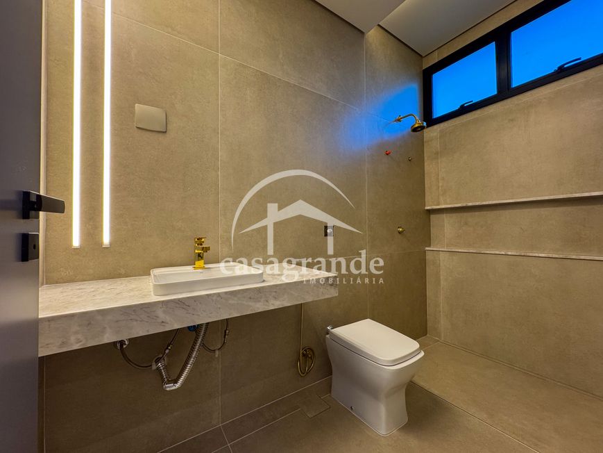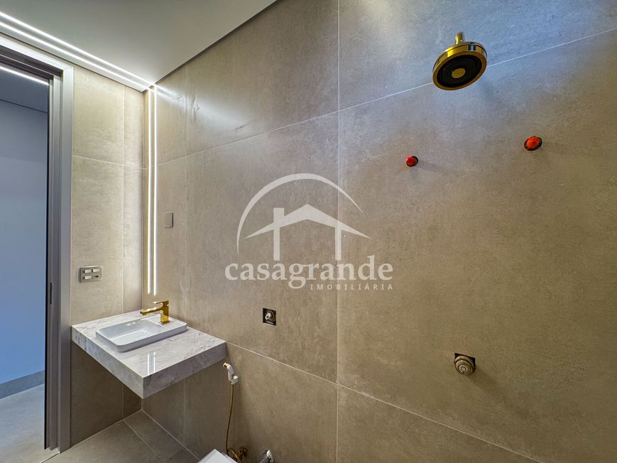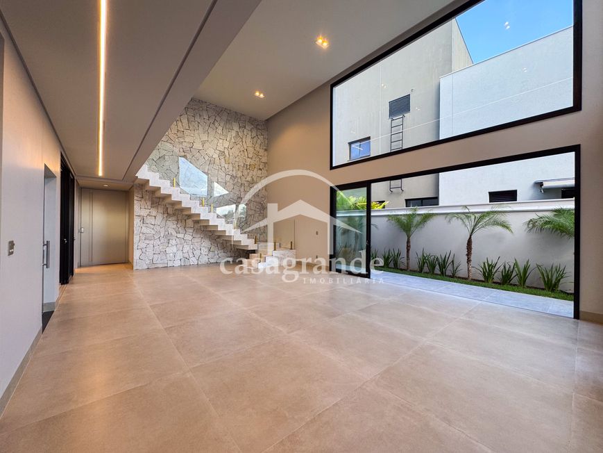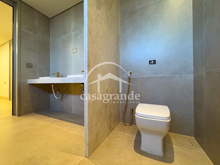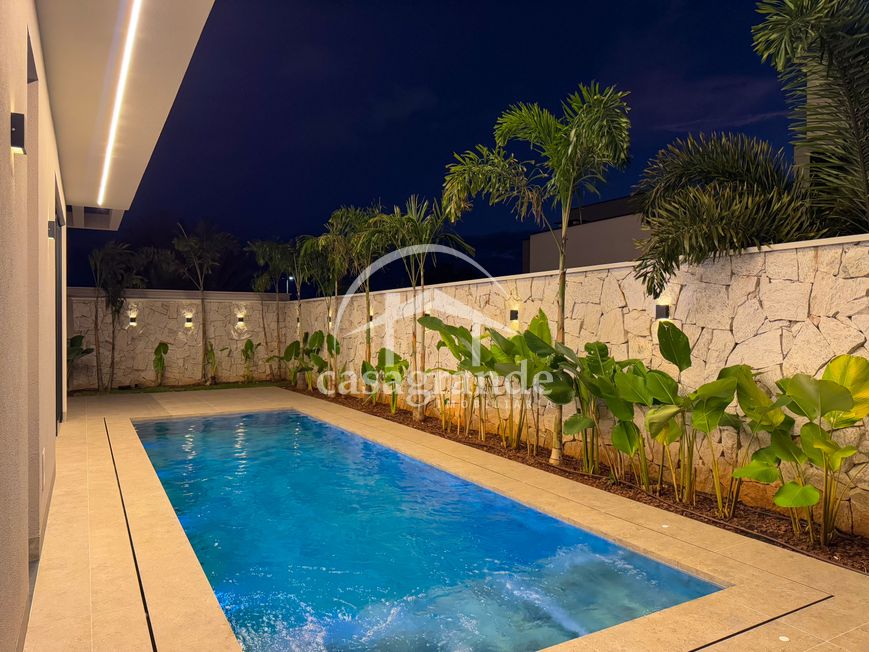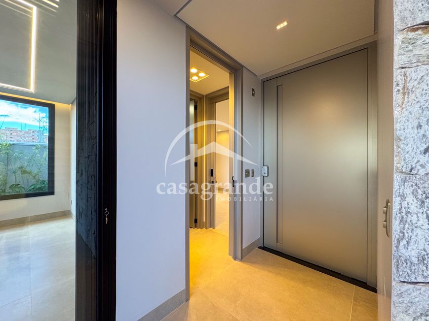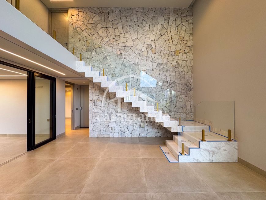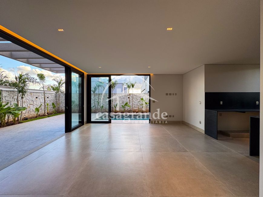 Casa alto padrão 1° piso: Sala multiuso, banheiro social, sala de tv, ampla sala de estar e jantar integradas com pé direito duplo, lavabo, cozinha, área gourmet, área de serviço com entrada interna e externa e elevador. 2° piso: 1 suíte Master com closet, sacada privativa e banheiro com banheira, 3 suítes adicionais, todas com excelente iluminação natural e ventilação, sendo 2 com sacadas. Área externa piscina aquecida com hidromassagem e banheiro de apoio. Condomínio oferece piscina adulto com raia de 25m, quadra de tênis epoliesportiva, salão de festa com espaço gourmet, fitness Center by Reebok, mais de 145 mil m² de áreas verdes, clube com mais de 19mil m², espaço para caminhadas, praças e parques infantis, natureza preservada, segurança 24 horas.