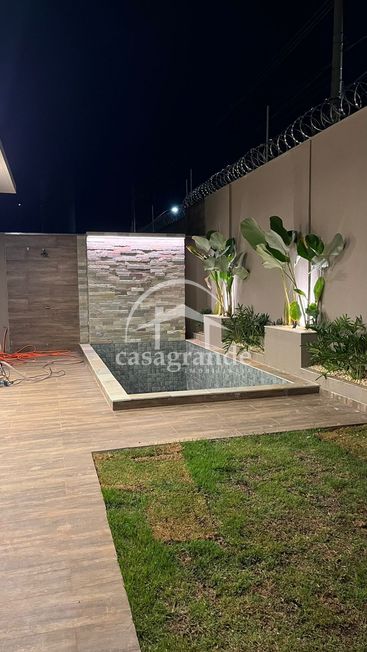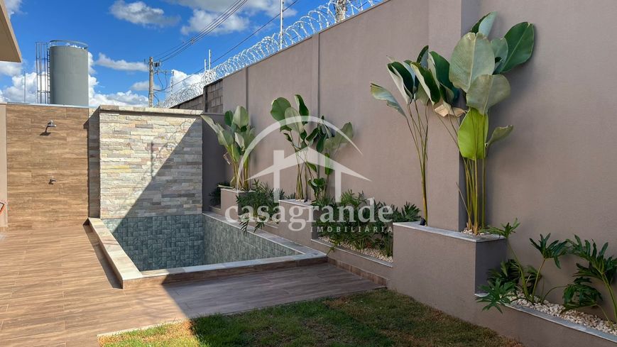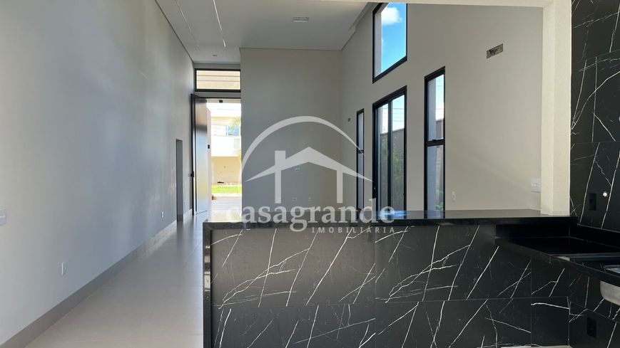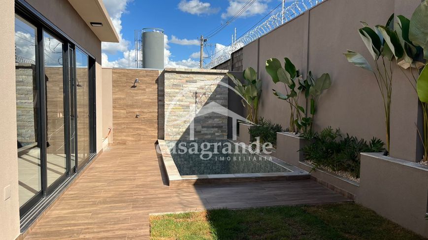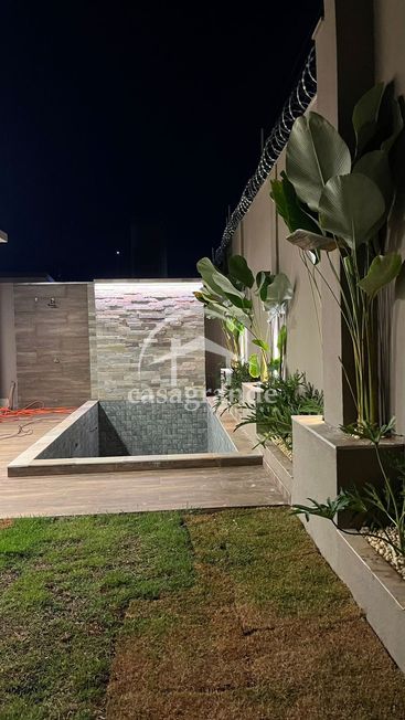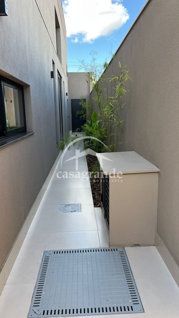 Casa en condomínio com sala pé direto duplo4,5mt, escritório, lavabo, três suítes, sendo a master com closet, espaço para armários no corredor de acesso aos quartos, cozinha integrada com espaço gourmet, área de serviços, duas vagas de garagem com tomadas para carro elétrico, piscina aquecida, ducha, deck de madeira na piscina, infraestrutura para ar condicionado em todos os cômodos, preparação para fotovoltáica, pisagismo em frente fundo e laterais.