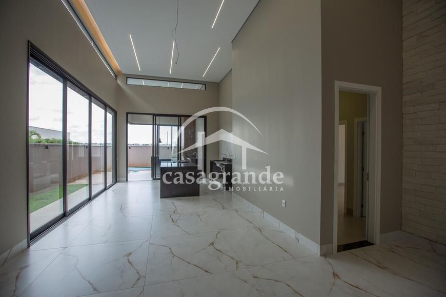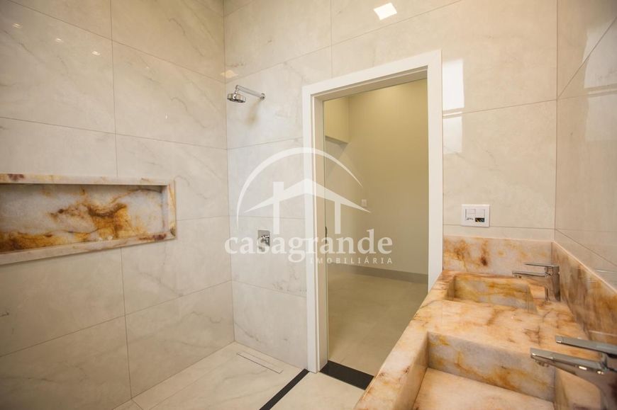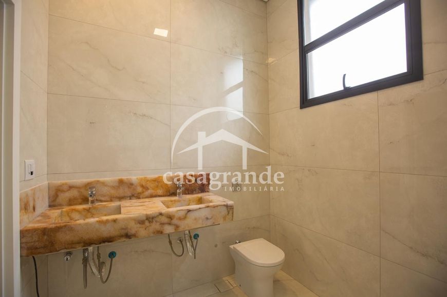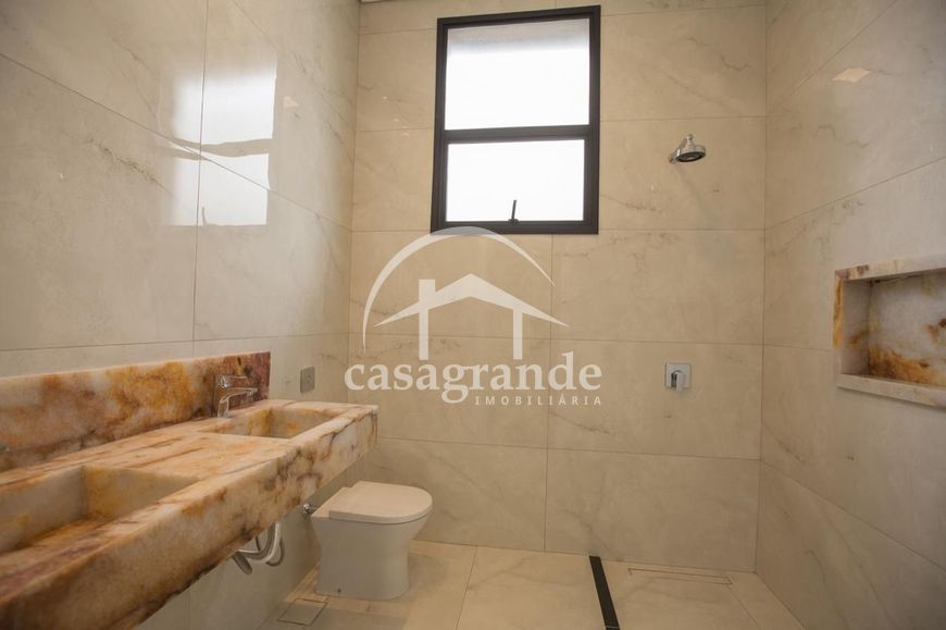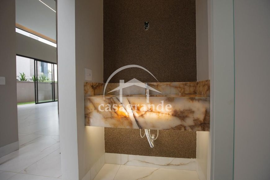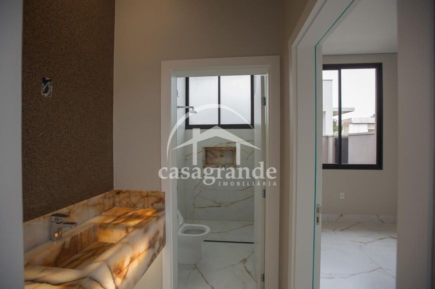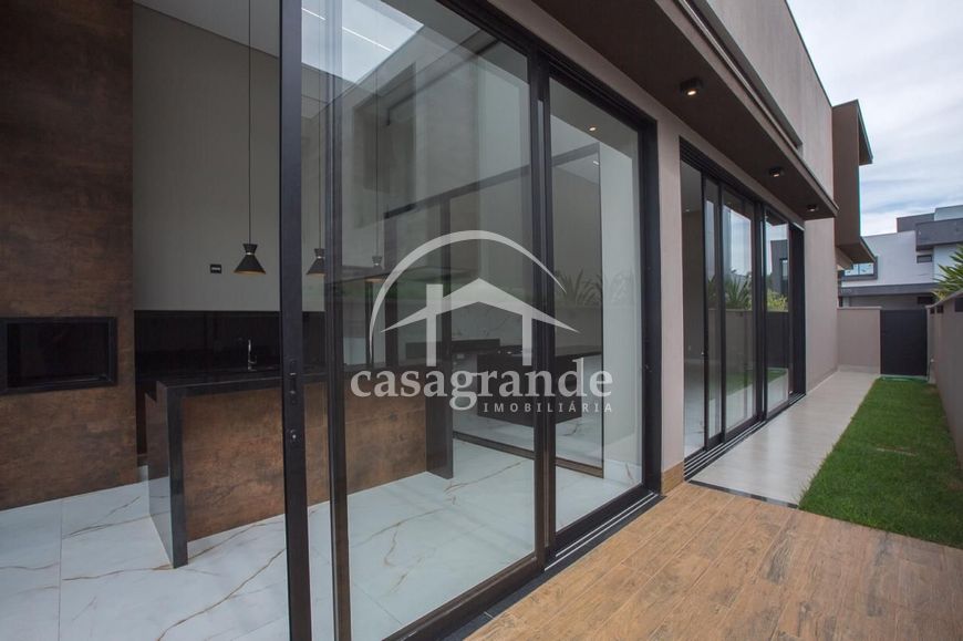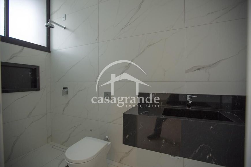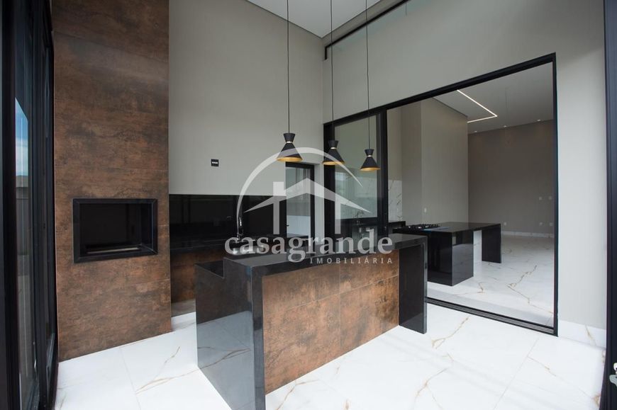 Sala em 2 ambientes com pé direito duplo, lavabo, 3 quartos, sendo 1 suíte com porta de correr e persiana automatizada, cozinha integrada com área gourmet, área de serviço, espaço gourmet com piscina aquecida e banheiro exclusivo, aquecedor solar, 4 vagas de garagem. Área construída de 233 m², área do terreno 467 m². Condomínio oferece espaço gourmet, piscina, playground, quadra poliesportiva, quadra de tênis, salão de festas. Segurança cerca elétrica, câmeras de segurança e portaria.