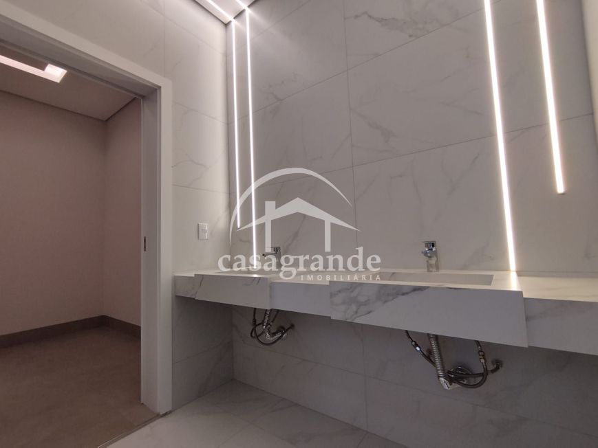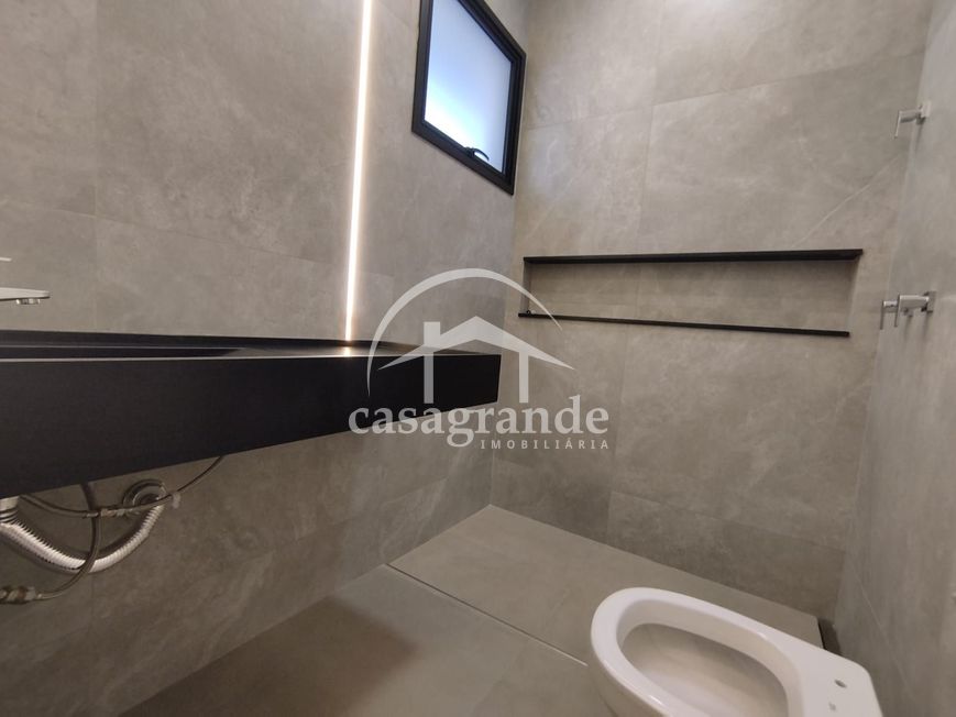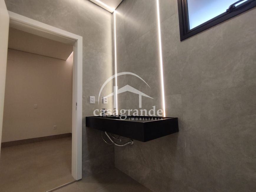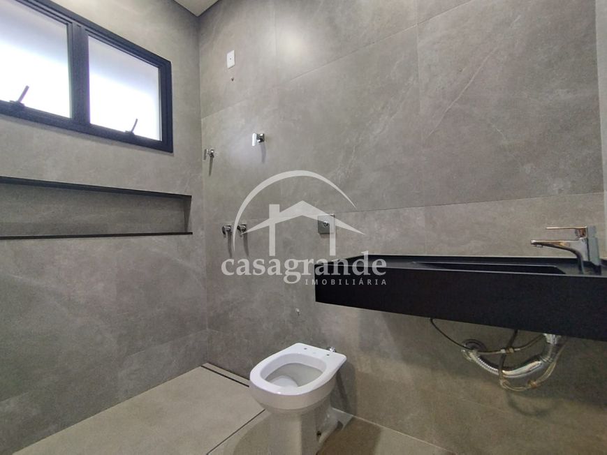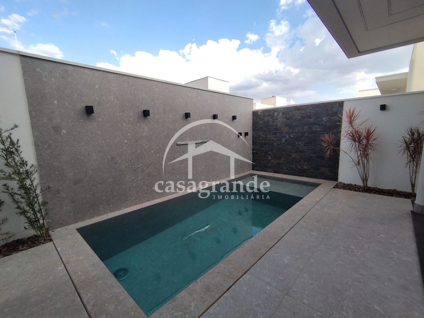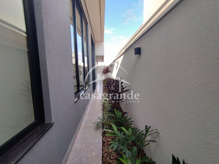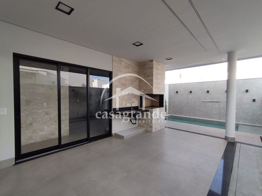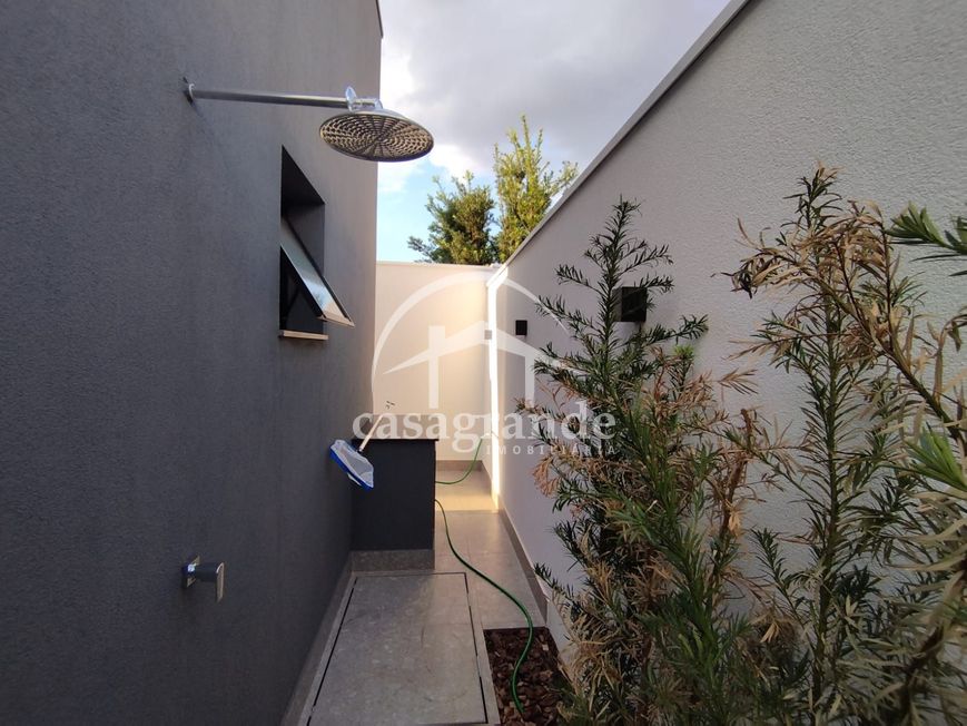 Sala em 2 ambientes com pé direito duplo, lavabo, escritório, 3 quartos, sendo 3 suítes, sendo a máster com closet, cozinha independente, área de serviço, despensa, área de lazer com espaço gourmet com churrasqueira, piscina aquecida, ducha e paisagismo finalizado. Garagem para 4 carros com ponto para carro elétrico. Aquecedor solar, infraestrutura para ar condicionado, porta de ACM de 4 metros, persianas automatizadas, telhas termoacústicas, mármore preto São Gabriel escovado e porcelanato Eliane 90x90 acetinado, metais linha Deca, preparação para energia fotovoltaica e energia trifásico. Área construída de 214 m², área do terreno 360 m². Condomínio oferece portaria 24 horas, monitoramento, academia completa, salão de festa, quadras de esportes, quadra de tênis, quadra de beach tênis, campo de futebol, playground, espaço fitness ao ar livre, pista de caminhada, ciclofaixa, quiosques com churrasqueira.