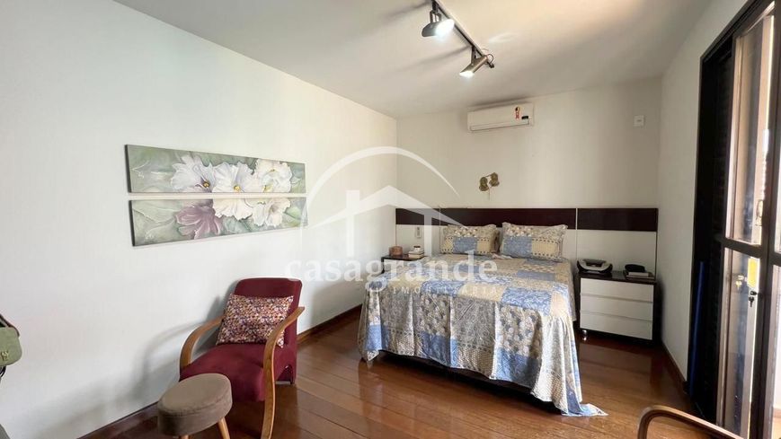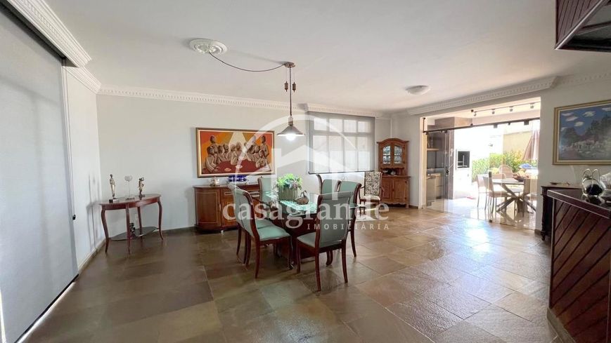 1° Piso sala em 2 ambientes com sacada, sala de tv, mini bar, lavabo, cozinha com bancada, cuba dupla e armários planejados. 2° piso: 4 quartos sendo 2 suítes, a máster com sacada, closet, amplo banheiro e cuba dupla. Todos os quartos com planejados de madeira maciça. Piso inferior área de serviço, despensa, banheiro e 1 quarto, entrada de área de serviço e depósito. Varanda gourmet com churrasqueira, cooktop, ducha, e amplo quintal. Energia fotovoltaica de 12 placas, piso com pedra luminária ouro verde e taco de madeira maciça. 2 vagas de garagem. Área construída de 319,40 m², área de terreno de 368,50 m².