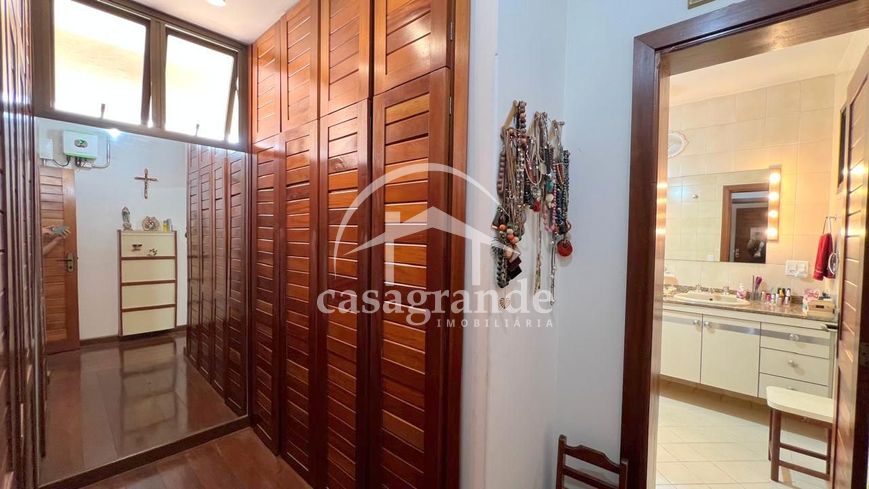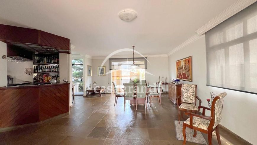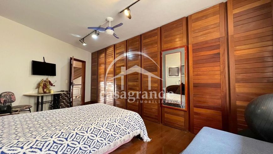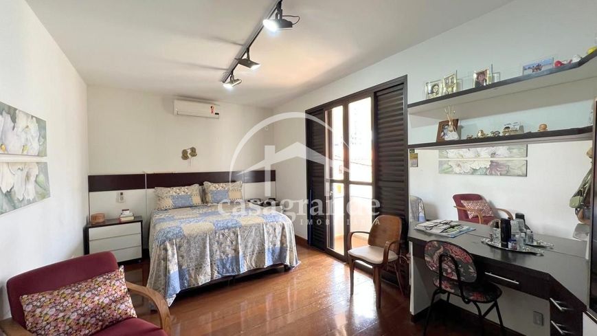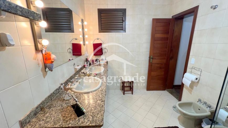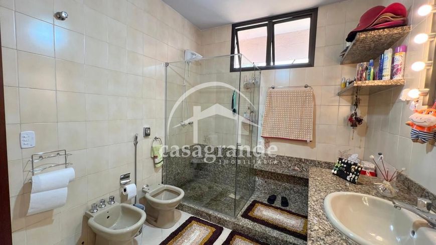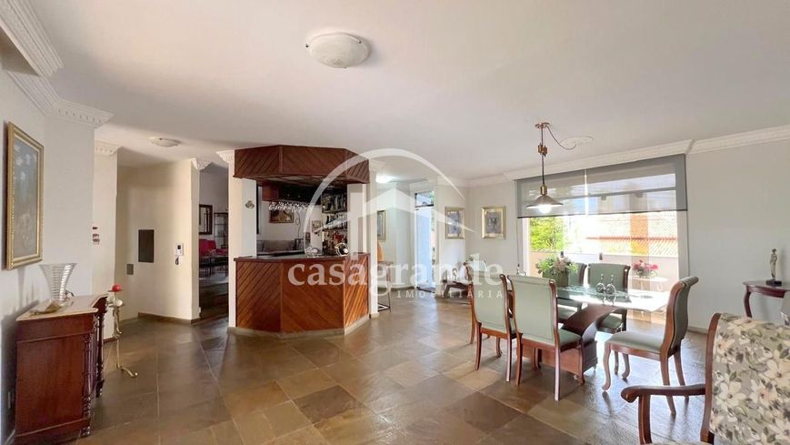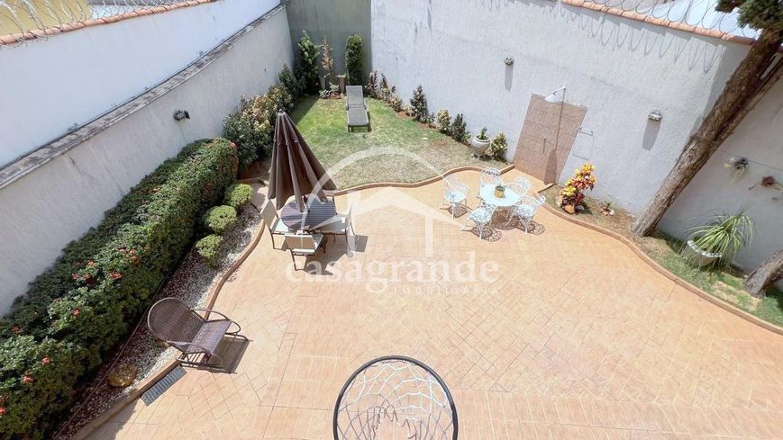 1° Piso sala em 2 ambientes com sacada, sala de tv, mini bar, lavabo, cozinha com bancada, cuba dupla e armários planejados. 2° piso: 4 quartos sendo 2 suítes e 1 semi-suíte, a máster com sacada, closet, amplo banheiro e cuba dupla. Todos os quartos com planejados de madeira maciça. Piso inferior área de serviço, despensa, banheiro e 1 quarto, entrada de área de serviço e depósito. Varanda gourmet com churrasqueira, cooktop, ducha, e amplo quintal. Energia fotovoltaica de 12 placas, piso com pedra luminária ouro verde e taco de madeira maciça. 2 vagas de garagem. Área construída de 319,40 m², área de terreno de 368,50 m².