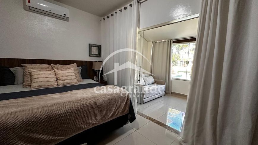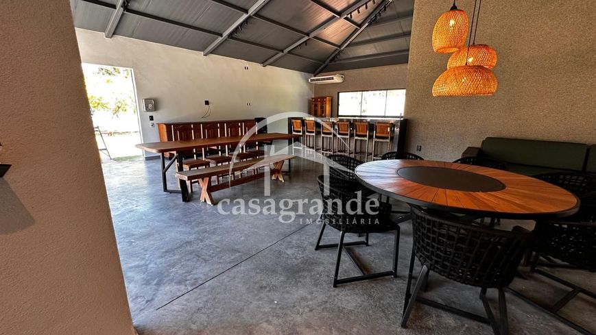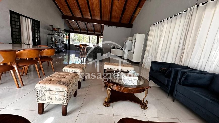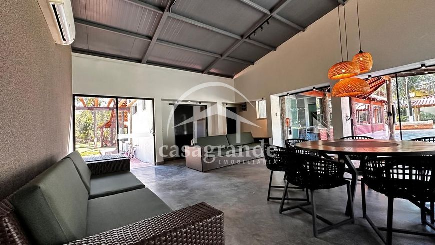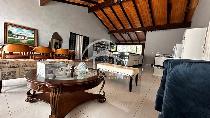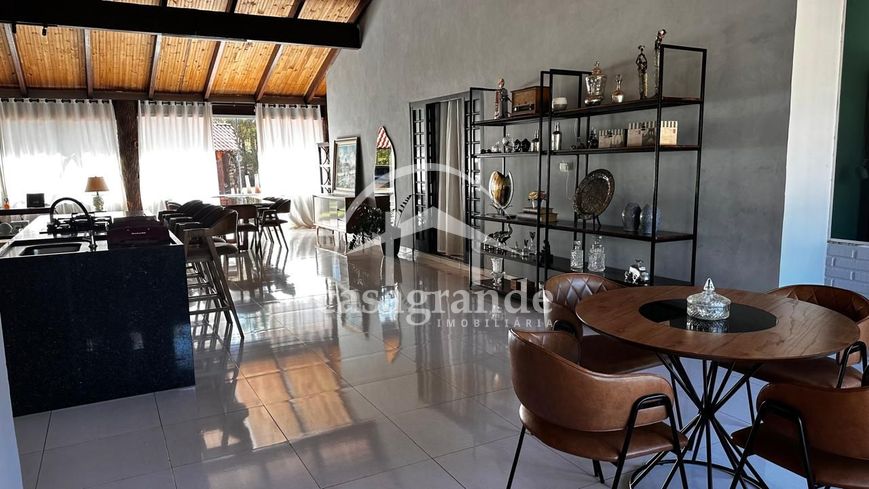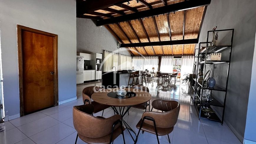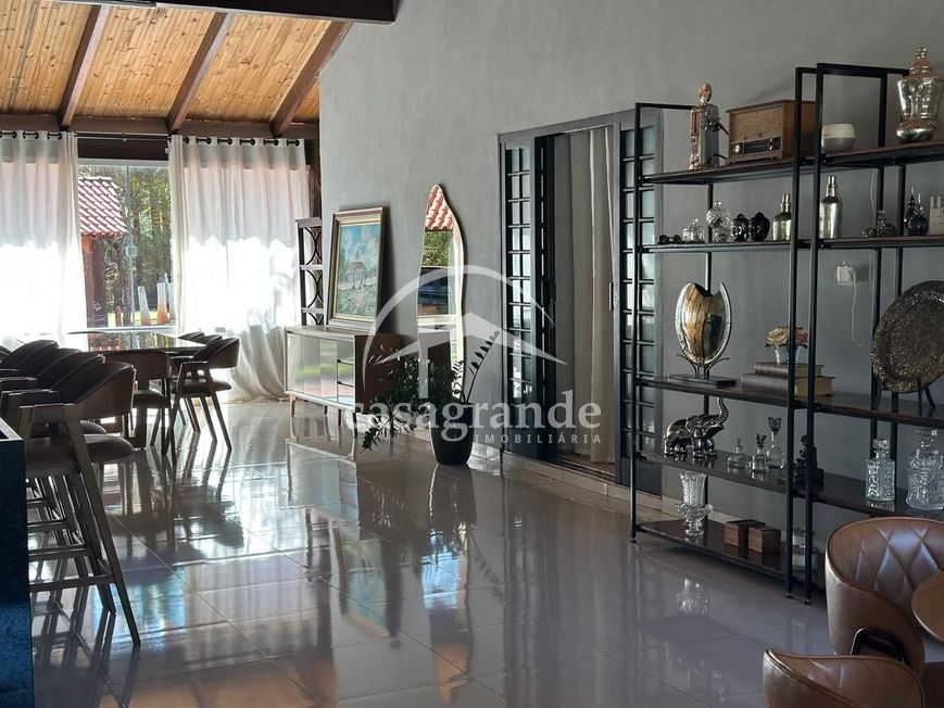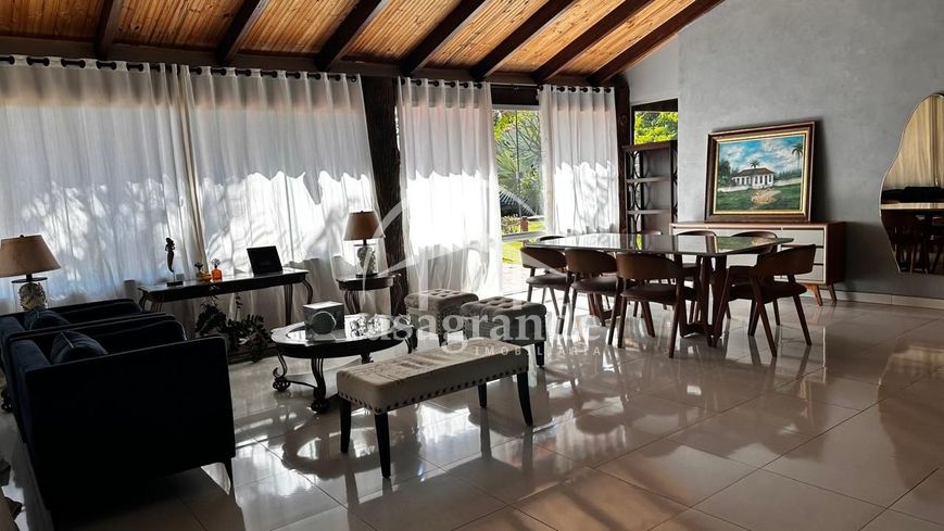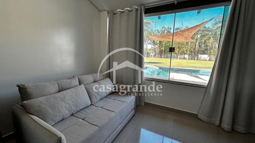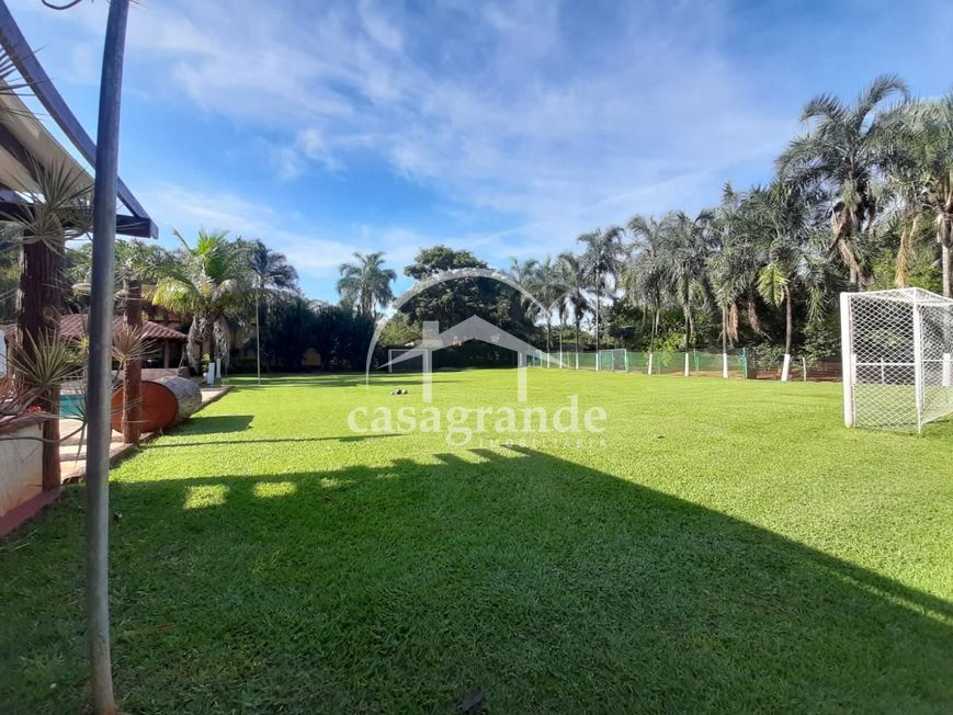Sala em vários ambientes, piso em porcelanato, janelas em blindex, lavabo, cozinha completa com armários, sala de tv, 3 quartos, sendo, 2 suítes, todos com armários e ar condicionado, closet, lavanderia completa e varanda. Casa secundaria: Sala de tv climatizada, janelas em blindex, cozinha completa com armários, 2 quartos, 1 suíte e 1 banheiro social, ar condicionado, móveis planejados, lavanderia. Quarto externo: Acomodação para várias pessoas, banheiro e ar condicionado. Área gourmet externa climatizada: Cozinha completa com armários, churrasqueira, banheiro, piscina, campo de futebol, galinheiro, canil, capela. Área construída 604 m², área de terreno 5000 m². Condomínio com portaria 24 hrs, gramado, jardim, árvores frutíferas, poço artesiano, caixa de agua, irrigação automática, agua pressurizada, portão eletrônico e sistema de alarme.