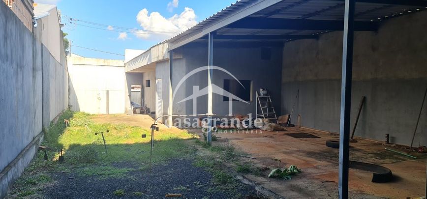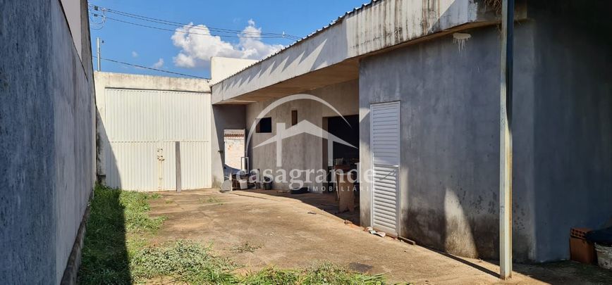 Galpão comercial com portão para caminhão e piso preparado, escritório, sala, cozinha e banheiros com acessibilidade. Barracão com 240 m², terreno 390 m².