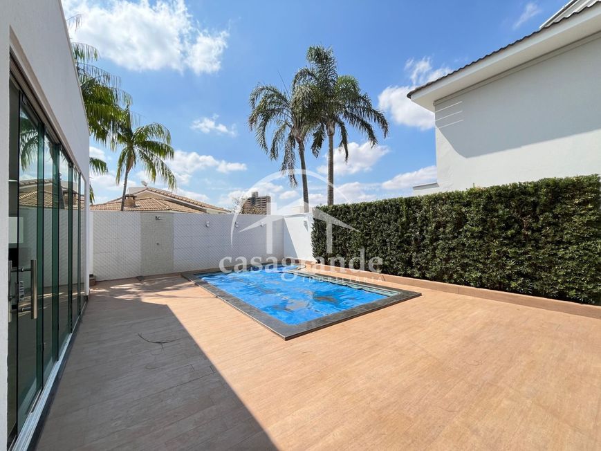 Excelente sobrado disponivel para locação em condominio com 284m2 sendo no Primeiro Piso : Sala em 02 ambientes, cozinha com armarios, escritorio com painel bancada e ar condicionado, banheiro social, lavanderia com armarios e varanda gourmet com churrasqueira e ar condicionado. Segundo Piso : Sala de Tv, Hall de entrada para 03 quartos sendo 1 suite master com closet e sacada, banheiro social. Piscina aquecida e banheiro externo. Para mais informações entrar em contato conosco!