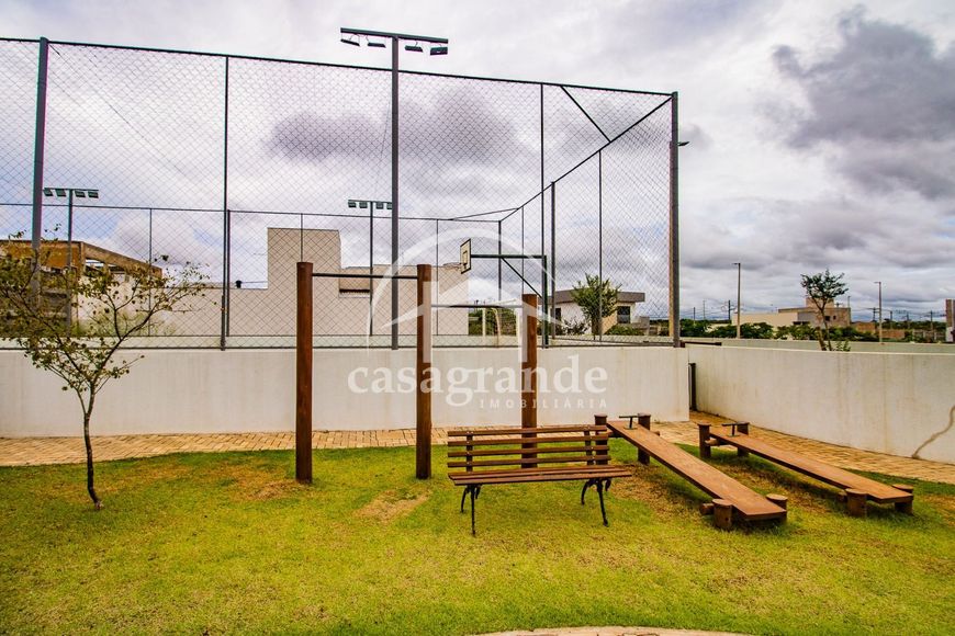 Terreno medindo 10,50 metros de frente, 23,90 metros de extensão nas laterais e 10,50 metros aos fundos, com área total de 250,95 m². Condomínio oferece espaço gourmet, playground, quadra poliesportiva e portaria 24h. Localização próximo ao Parque do Sabiá, estádio, supermercado e escola.