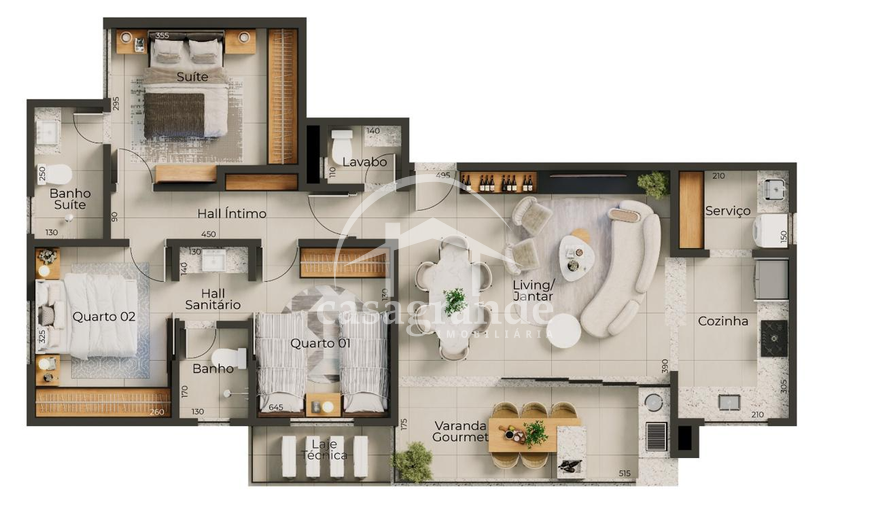 Apartamento - Sala em 2 ambientes com varanda gourmet e churrasqueira, lavabo, 3 quartos, sendo 1 suíte e 2 semi-suíte, cozinha americana, área de serviço, 2 vagas de garagem em linha. Área privativa 93 m². Edifício possui elevador, academia, bicicletário, salão de festas, coworking e lavanderia.