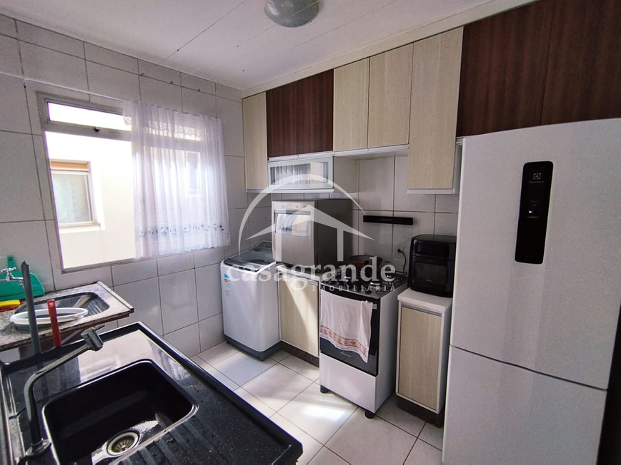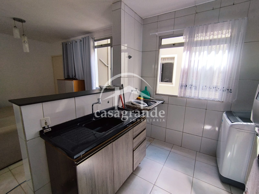 Sala em 2 ambientes, banheiro social, 2 quartos, cozinha americana com armários, área de serviço, 1 vaga de garagem. Área privativa 43,61 m². Área de lazer com playground, salão de festas, área de convivência, quadra poliesportiva, além de mini mercado. Condomínio incluso gás encanado, segurança 24 hrs, limpeza, jardinagem, zeladoria e administradora.