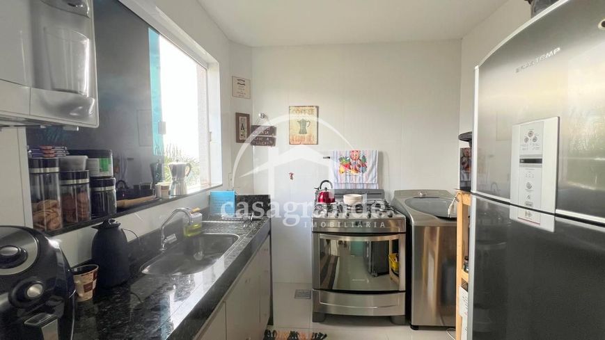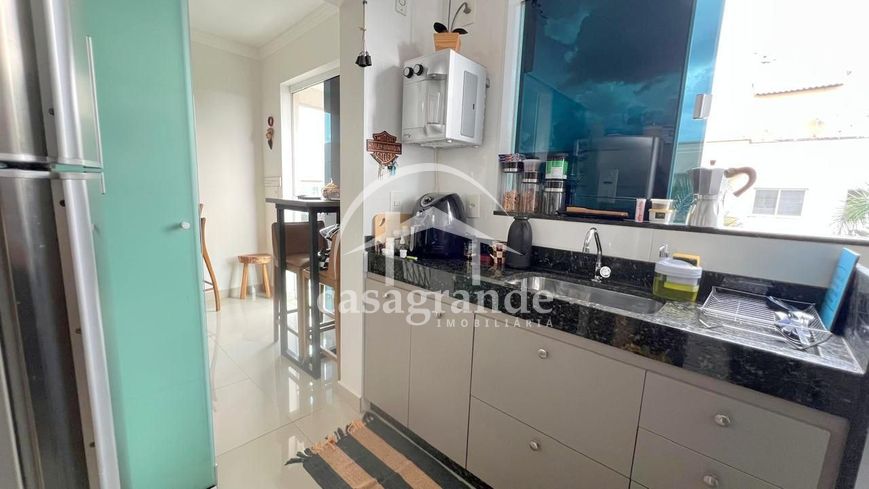 Apartamento - sala em 2 ambientes com sacada, banheiro social, 2 quartos, sendo 1 suíte, cozinha, área de serviço, 1 vaga de garagem coberta (cabendo 2 carros pequenos). Armários planejados na cozinha e nos banheiros armários e box. Área privativa 54 m². Prédio com elevador. Ótima localização, próximo a supermercado, lojas e serviços.