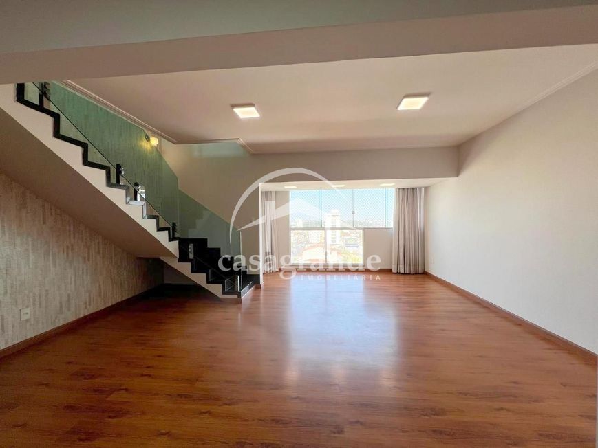Belíssima cobertura! Pertinho do centro da cidade. 1° piso: sala em 2 ambientes com cortinas e espelho, banheiro social, 2 quartos, sendo 1 suítes com sacada, cozinha, área de serviço. 2° piso: sala com painel, cortinas, 1 quarto, espaço gourmet/cozinha com bancadas e churrasqueira, fogão Cooktop, dispensa, banheiro, terraço. Imóvel montado com armários planejados, nos quartos, banheiros, cozinha e área de serviço, cortinas, lâmpadas, box e espelho, tampa de vaso nos banheiros. Projeto de iluminação. Área privativa coberta: 154,28m² + área privativa descoberta: 33,94m², área provativa total: 188,22m². 03 vagas de garagem livres. Elevador vai até o 2º piso.