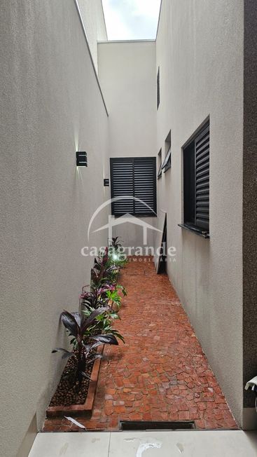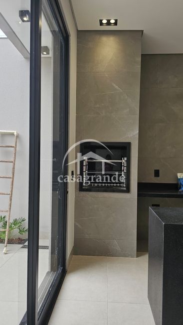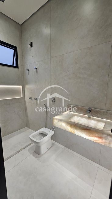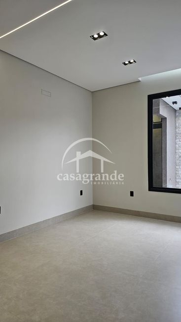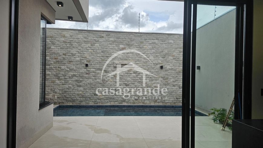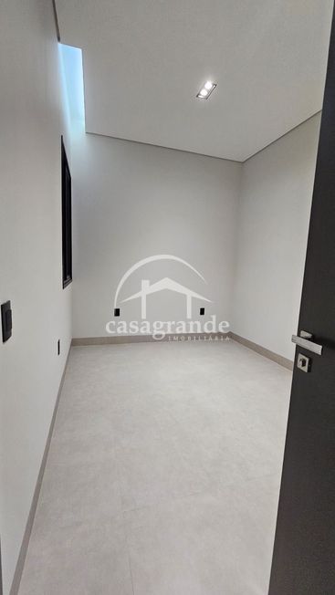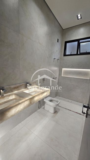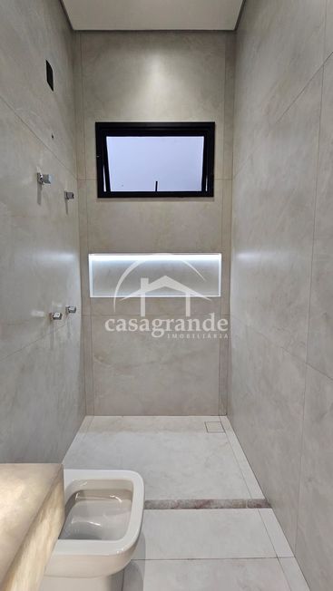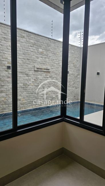 Casa térrea sala em 2 ambientes com pé direito alto de 4,5 metros, lavabo, 3 quartos, sendo 3 suítes, banheiro social, cozinha com ilha, área de serviço, área gourmet com ilha, piscina aquecida automatizada com Led e cascata, 3 vagas de garagem. Portas dos quartos ACM com 2,40 e da sala com 4,20 de altura, energia fotovoltaica gerando 700 KW, preparação para ar condicionado, torneiras monocomando, casa toda rebaixada no gesso com sancas e Led, encanação de gás, pedras nos banheiros Quartzito Onix, ilhas, bancadas e pia pedra São Gabriel escovado, piso porcelanato acetinado CEUSA 1,20x1,20, revestimentos ELIANE, pisos dos banheiros BIANCOGRES, calçada pedra portuguesa. Área construída de 184 m², área do terreno 286 m.²