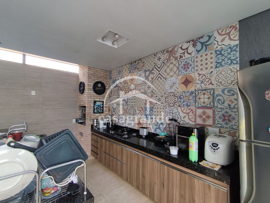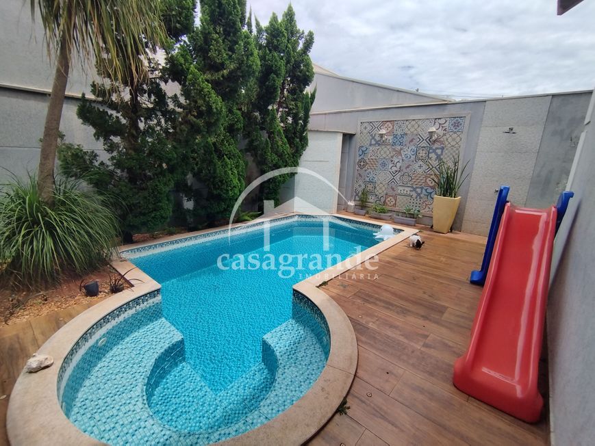 Casa térrea sala em 2 ambientes, jardim de inverno, lavabo, 3 quartos, sendo 3 suítes, sendo a máster com closet e banheira, banheiro social, cozinha com armários, área de serviço, área de lazer com espaço gourmet com churrasqueira, piscina aquecida, paisagismo, 2 vagas de garagem. Área construída de 195 m², área do terreno 360 m². Condomínio oferece portaria 24 horas, monitoramento, quadra poliesportiva, campo society, salão de festas, churrasqueira e playground.