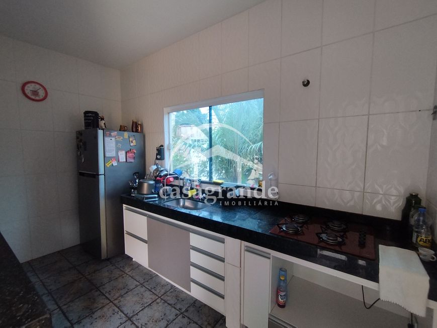 Casa térrea de esquina, sendo sala, 3 quartos, sendo 2 suítes, banheiro social com box, 2 cozinhas, copa, despensa, área de serviço, varanda gourmet com churrasqueira e fogão a lenha, pomar, 4 vagas de garagem. Portão eletrônico e câmera de segurança. Área construída de 165,82 m², área do terreno 305,96 m².