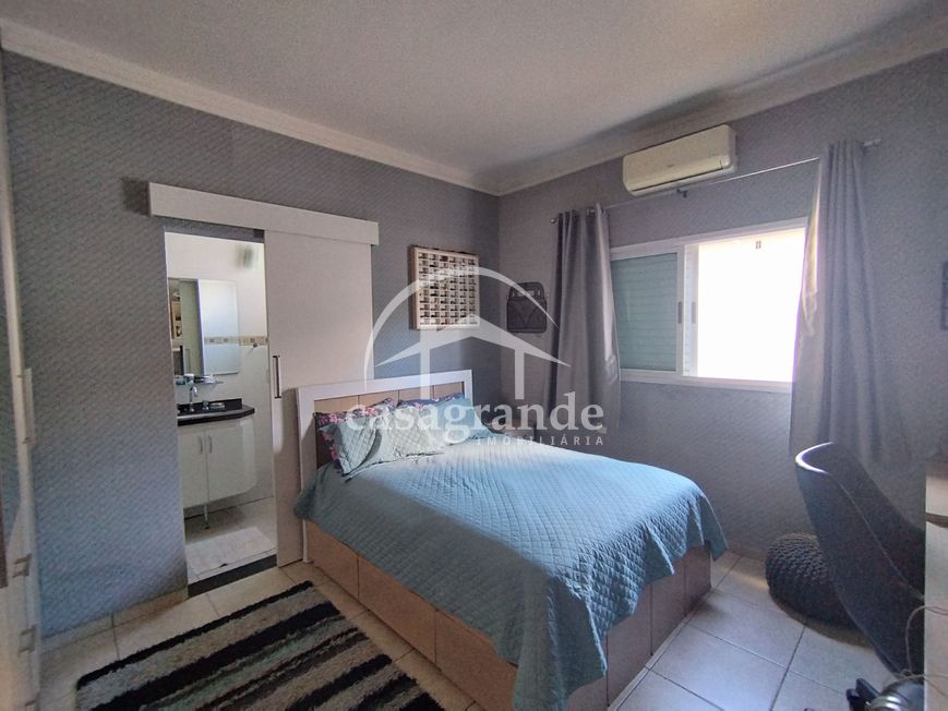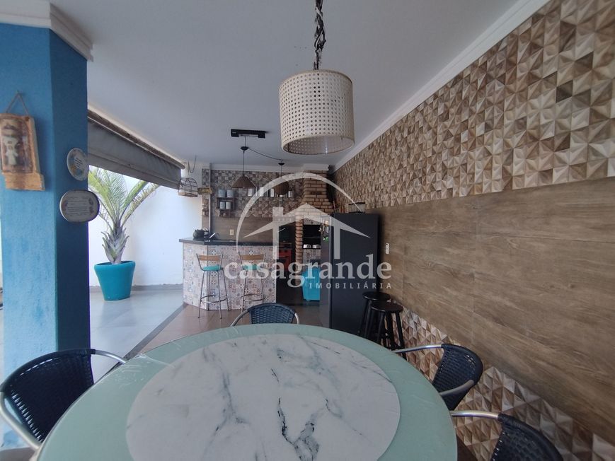 Casa térrea, sendo sala em 2 ambientes, lavabo, escritório, 3 quartos, sendo 3 suítes com planejados, sendo a máster com banheira, cozinha com armários. Varanda gourmet com churrasqueira, banheiro e área de serviço, ducha, 4 vagas de garagem. Área construída de 207 m², área do terreno 360 m². Condomínio oferece portaria 24 horas, monitoramento, quadra poliesportiva, campo society, salão de festas, churrasqueira e playground.