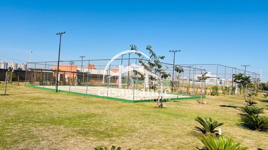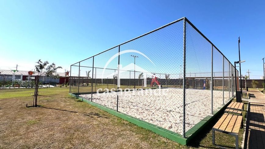 Terreno em condomínio fechado, medindo 11,35 metros de frente, 25 metros de extensão nas laterais e 11,35 metros aos fundos, com área total de 283,75 m². Condomínio oferece portaria e segurança 24 hrs, piscina adulto e deck mobiliado, piscina infantil com brinquedo aquático, quadra para beach tennis, campo de futebol, academia, brinquedoteca, salão de jogos, espaço gourmet com churrasqueira, salão de festas, redário, academia ao ar livre, e playground.
