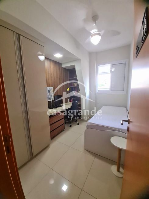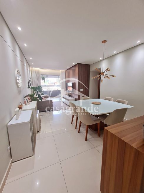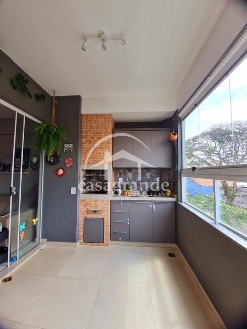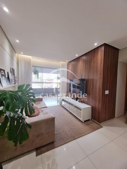 Salas de estar e jantar amplas, rebaixamento de gesso e painel de madeira no hall e nas salas. Varanda Gourmet com churrasqueira. Equipada com cortina de vidro e cortina blackout.