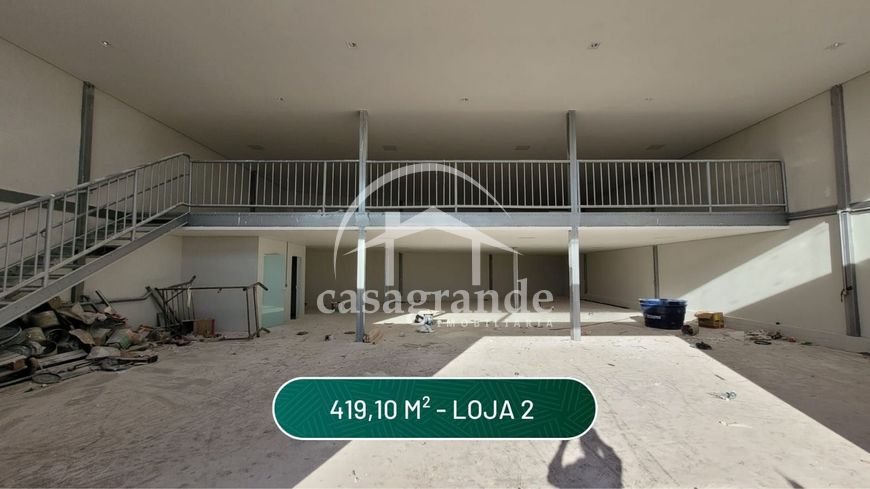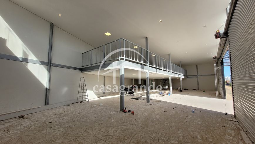 Loja comercial a venda com portas automatizadas com 4,5 metros de altura, mezanino com piso acústico, telhas acústicas, banheiros adaptados para PCD, calçadas largas para estacionamento, iluminação natural. Medindo 372,70 m² mais 186,35 m² de mezanino, totalizando 559,05 m². Via de fácil acesso para a BR 365, e bairros Santa Mônica, Segismundo Pereira e Novo Mundo.
