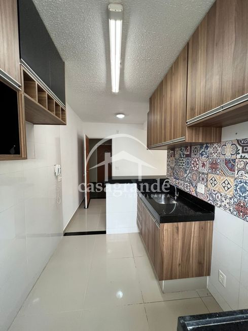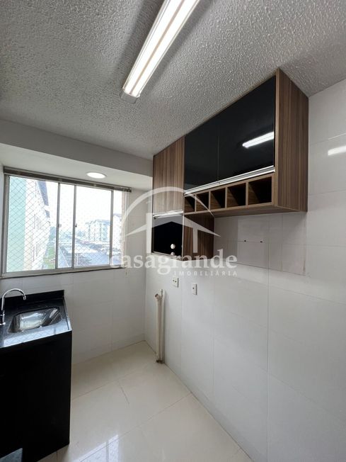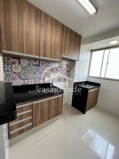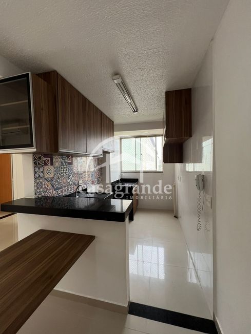 Apartamento com sala de estar conjugada com cozinha e lavanderia e sacada, banheiro social, tres quartos, moveis planejados ja montados, ar condicionado na sala.